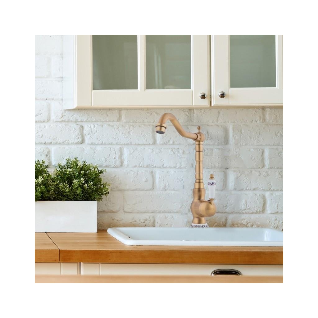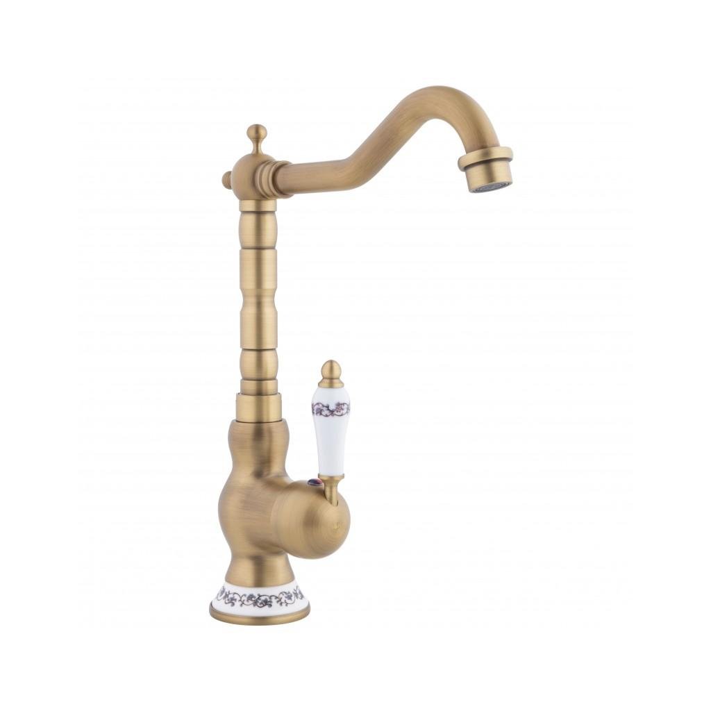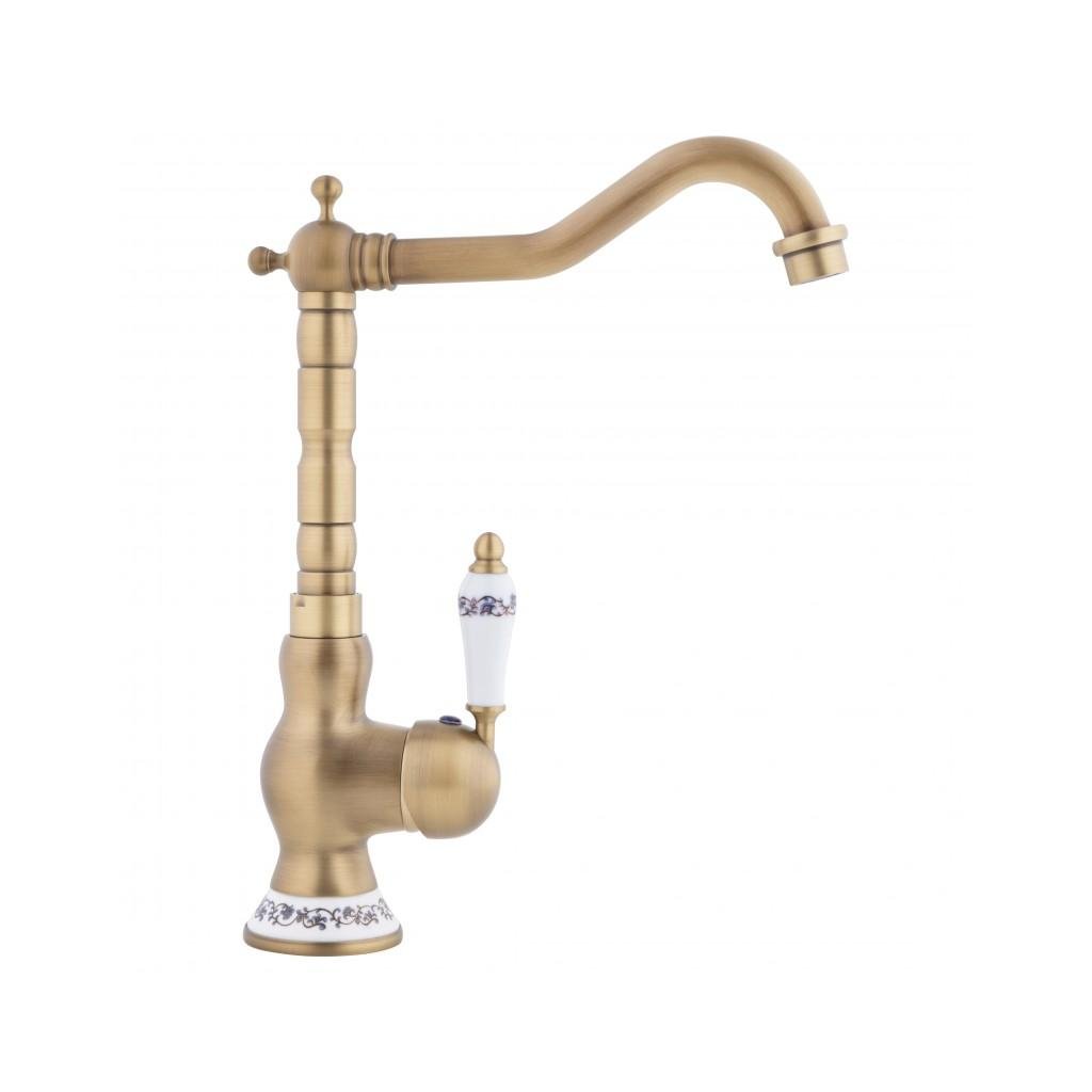 Erga Batug, retro mosogató csaptelep h-315, sárgaréz-fehér, ERG-YKA-BZ.BATUG-GLD