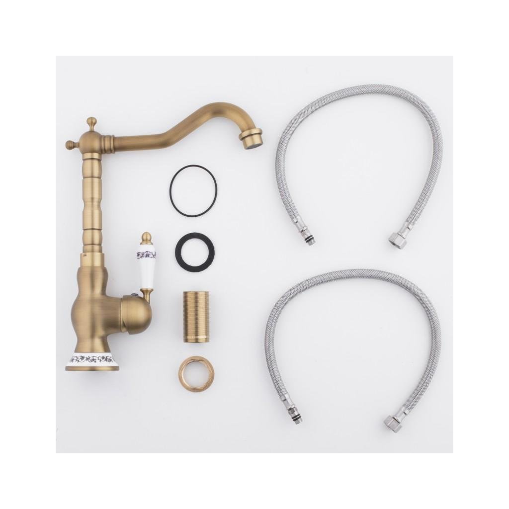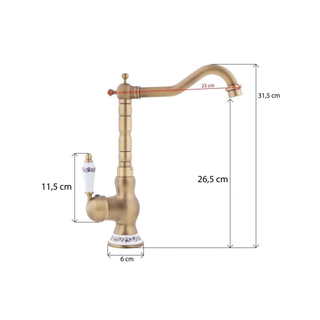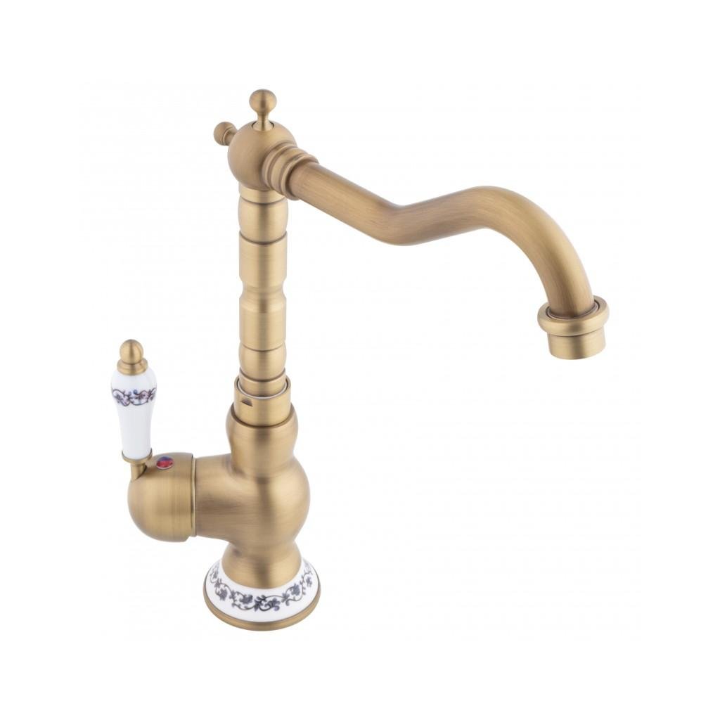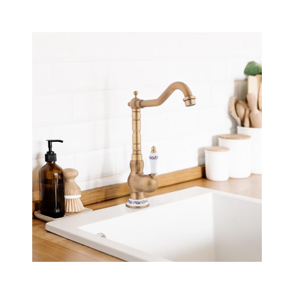 Erga Batug, retro mosogató csaptelep h-315, sárgaréz-fehér, ERG-YKA-BZ.BATUG-GLD
