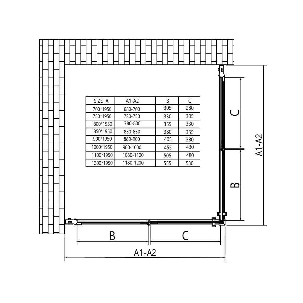 - Az ajtóoldal mérete: 850 mm / 1000 mm