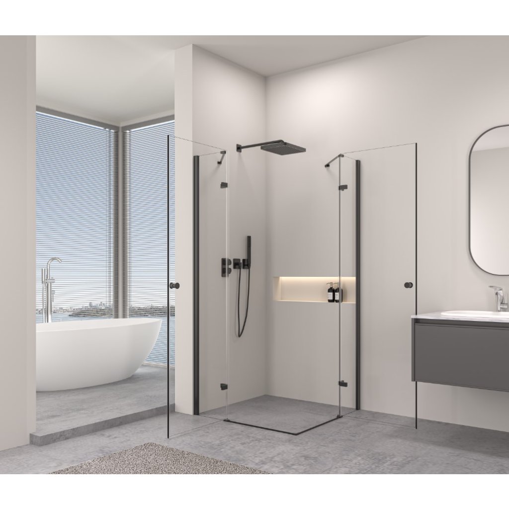Erga Bern Dupla, zuhanykabin 2 szárnyas ajtókkal 70 (ajtó) x 120 (ajtó) x 195 cm, 6mm átlátszó üveg, fekete profil, ERG-V02-BERN-D070D120-CL-BK