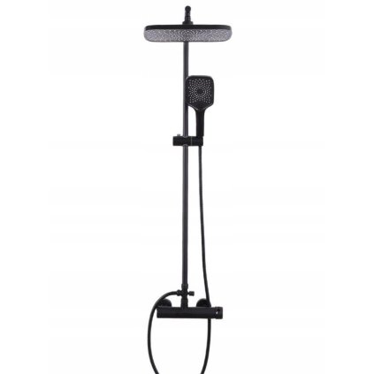 Zuhanykészlet mechanikus csapteleppel, vezérlőelemmel és vízáramlás kapcsolóval az esőzuhany, a kézi zuhanyfej és a kád kifolyója között. A fekete felület kiváló minőségét a modern porfestési technológia garantálja. A készlet tartalmaz egy széles, stílusos, 25 x 25 cm-es esőzuhanyzót és egy modern ANTI-CALC rendszerrel ellátott zuhanyfejet, amely megakadályozza a vízkőképződést.