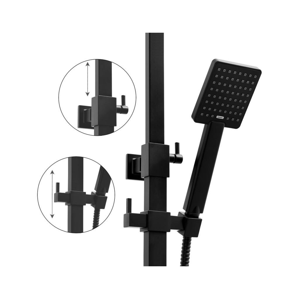 Zuhanykészlet mechanikus csapteleppel, vezérlőelemmel és vízáramlás kapcsolóval az esőzuhany, a kézi zuhanyfej és a kád kifolyója között. A fekete felület kiváló minőségét a modern porfestési technológia garantálja. A készlet tartalmaz egy széles, stílusos, 25 x 25 cm-es esőzuhanyzót és egy modern ANTI-CALC rendszerrel ellátott zuhanyfejet, amely megakadályozza a vízkőképződést.