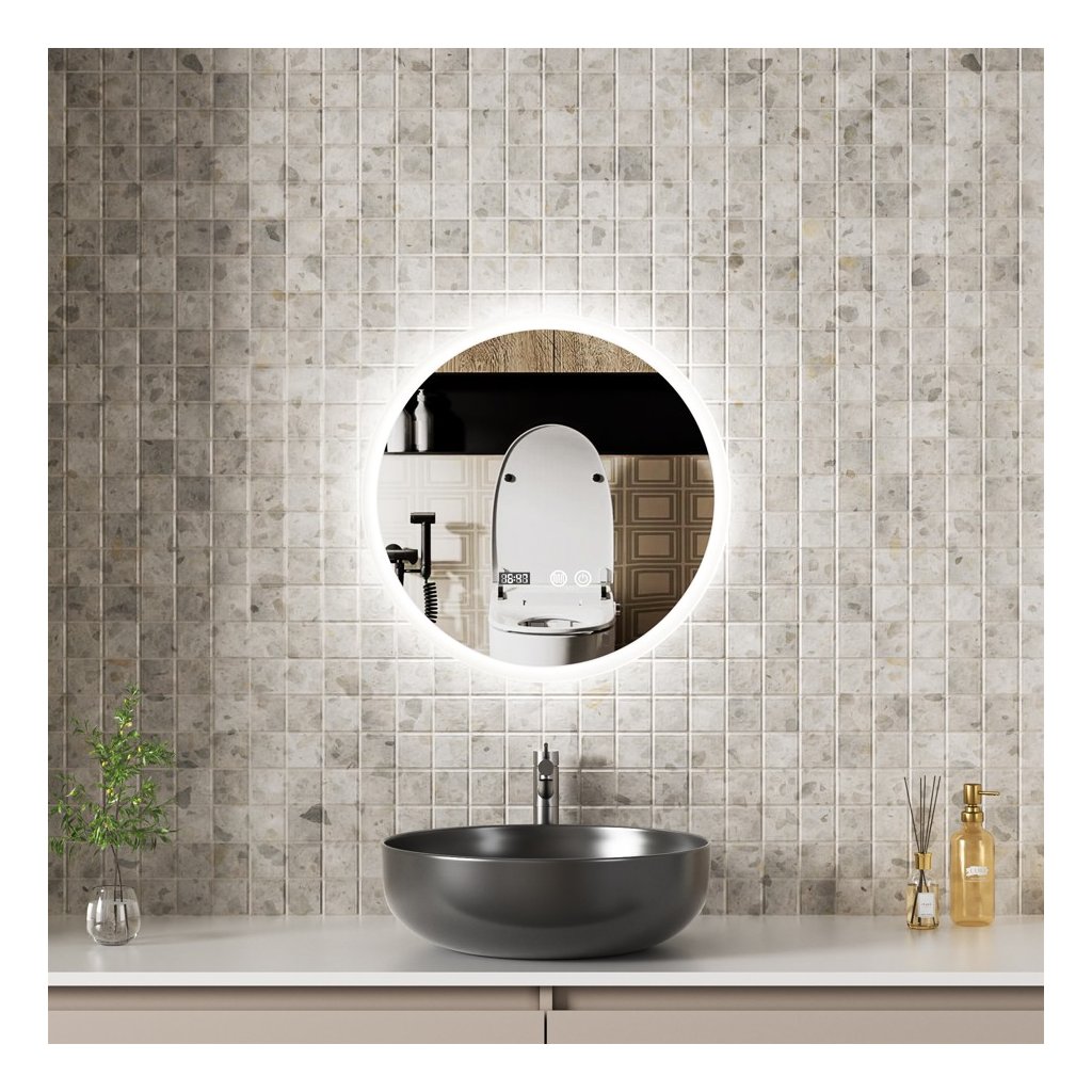 Erga Deam, kerek LED-es tükör 50cm, 3 színű fény, első világítás, páramentesítő fűtőbetét, ERG-V01-Deam-5050-CL