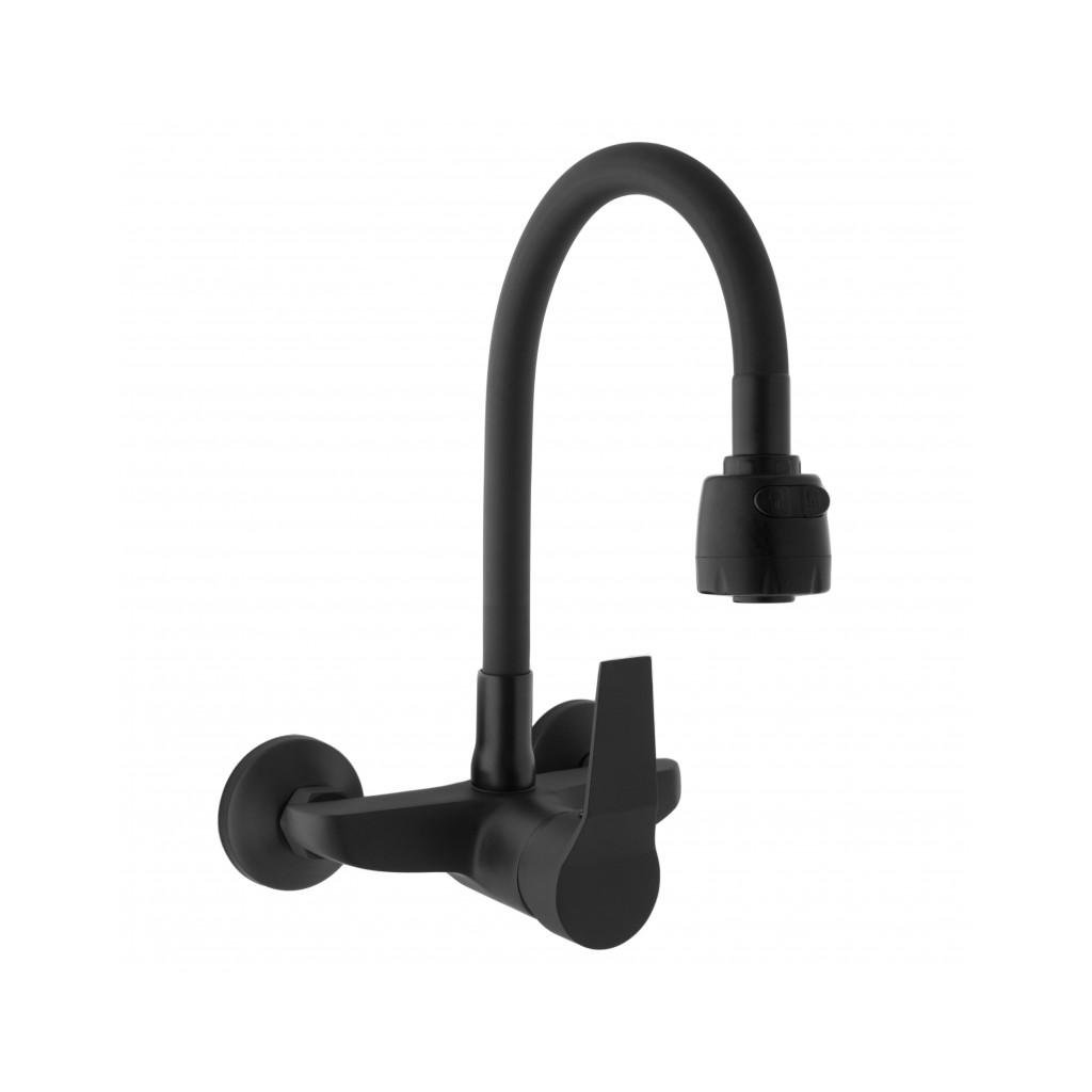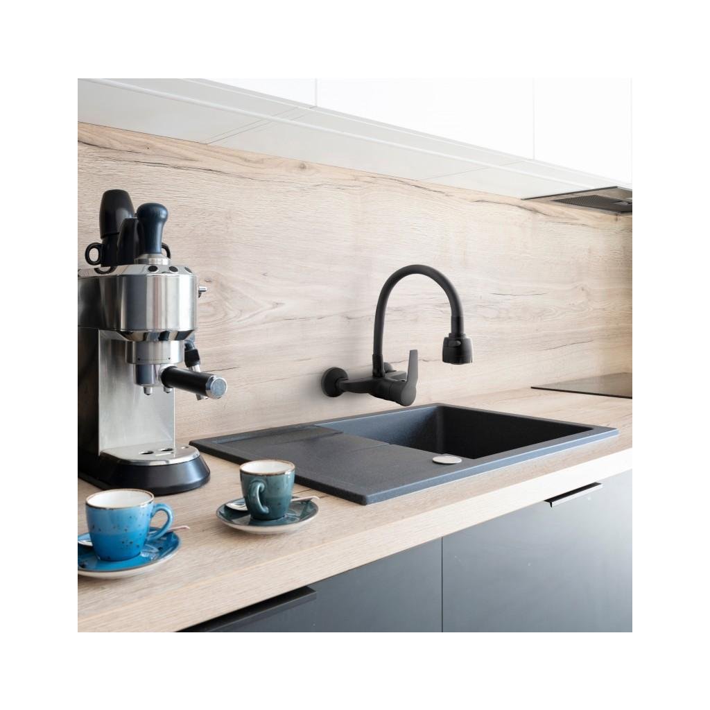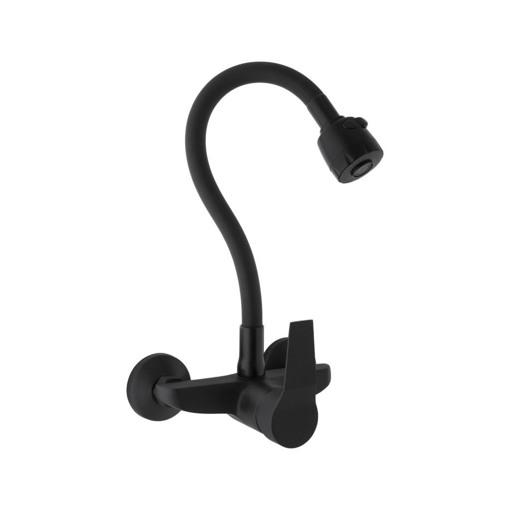 Falra szerelhető mosogató csaptelep, egykaros fekete matt színben. A csap kétáramú kimenettel rendelkezik, melynek köszönhetően a víz áramlását klasszikusról zuhanyra változtathatjuk. A hajlékony kifolyó nagyon kényelmes és praktikus a mindennapi használatra - akár két tálas nagy mosdóval is. A levegőztető akár 40%-kal csökkenti a vízfogyasztást.