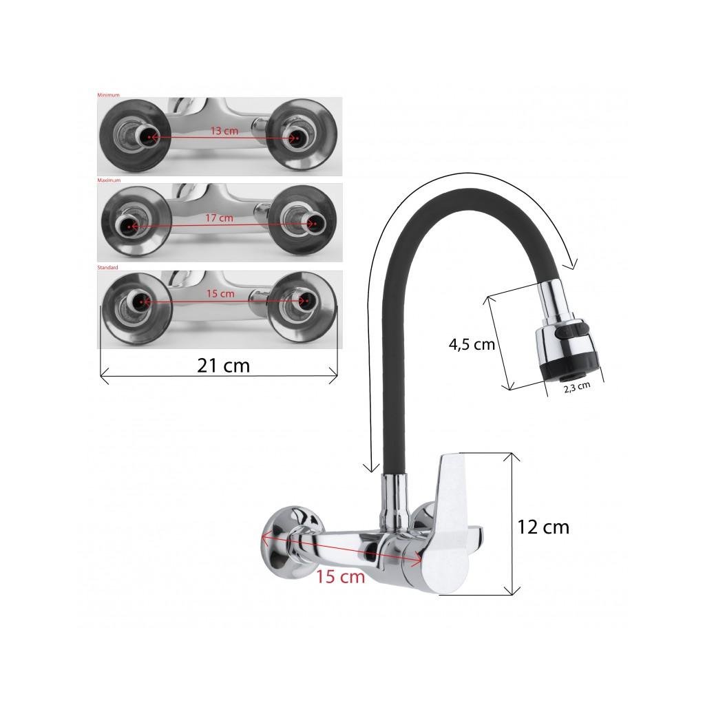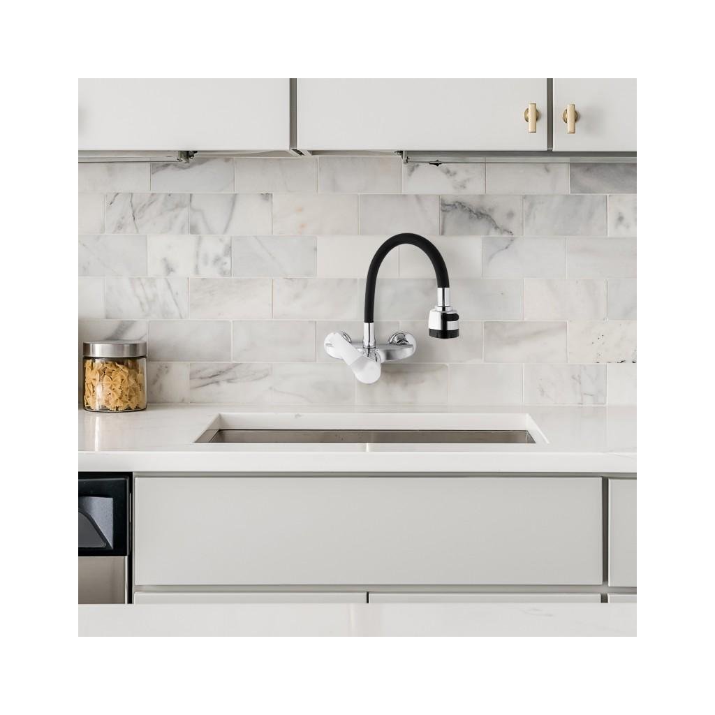 - Csaptelep típusa: konyhai csaptelep, kétlyukú, egykaros, falra szerelhető