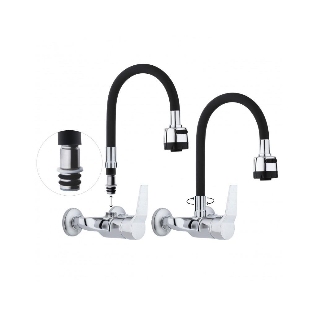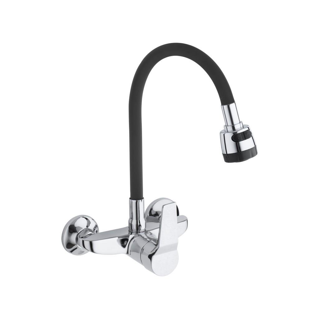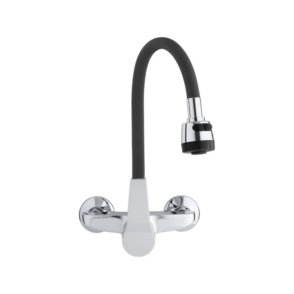 Falra szerelhető mosogató csaptelep, egykaros fekete színben. A csap kétáramú kimenettel rendelkezik, melynek köszönhetően a víz áramlását klasszikusról zuhanyra változtathatjuk. A rugalmas kifolyó nagyon kényelmes és praktikus a mindennapi használatra - akár két tálas nagy mosdóval is. A levegőztető akár 40%-kal csökkenti a vízfogyasztást.