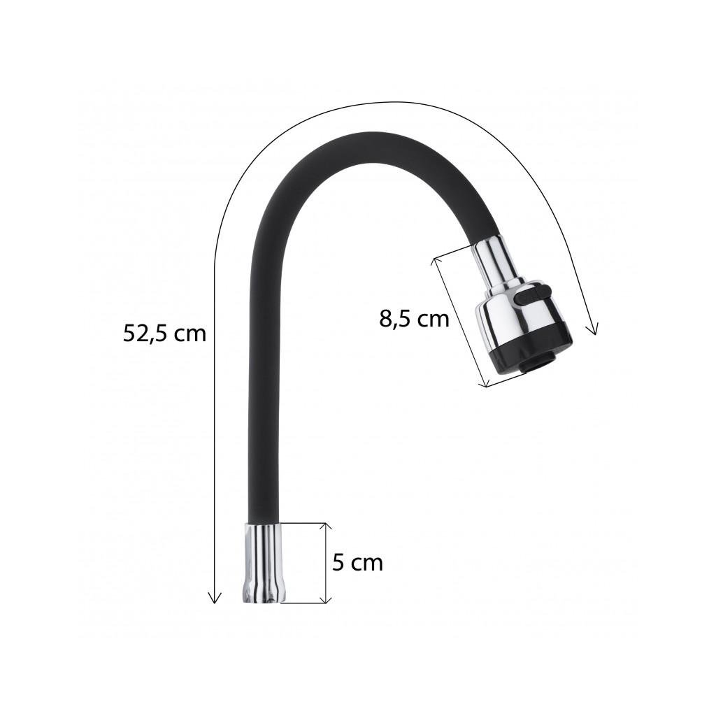Rugalmas kar alakmemóriával, fekete színben. Kétsugaras fúvókával van felszerelve, amely biztosítja a vízáramlás kényelmes beállítását az Ön igényei szerint.