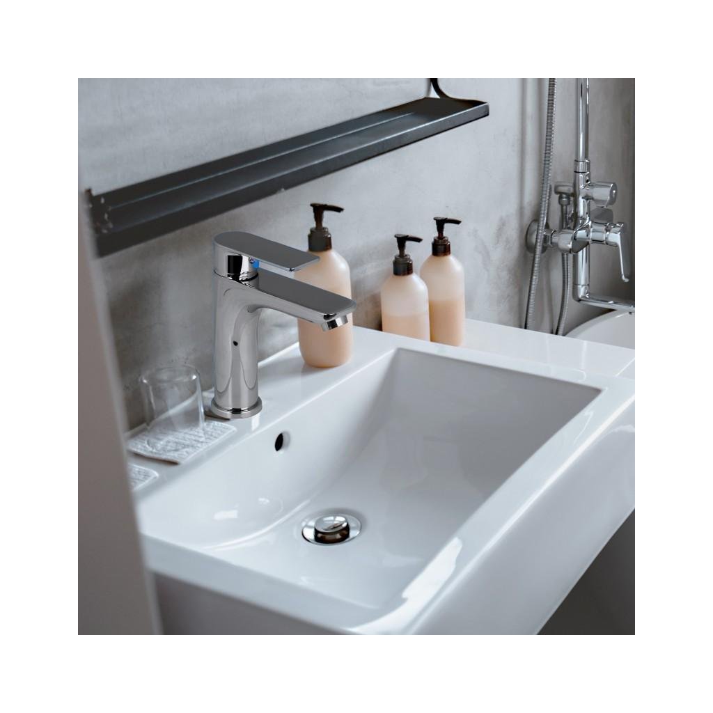 Mosdócsap, szabadon álló, egykaros fix kifolyóval. Mind a 35 mm-es kerámiafej, mind a levegőztető akár 40% vizet takarít meg. A készlet 2 minőségi, 40 cm hosszú, fonott rozsdamentes acél tömlőt tartalmaz szabványos 3/8 hüvelykes csatlakozásokkal és egy sor akkumulátor rögzítő tartozékot.