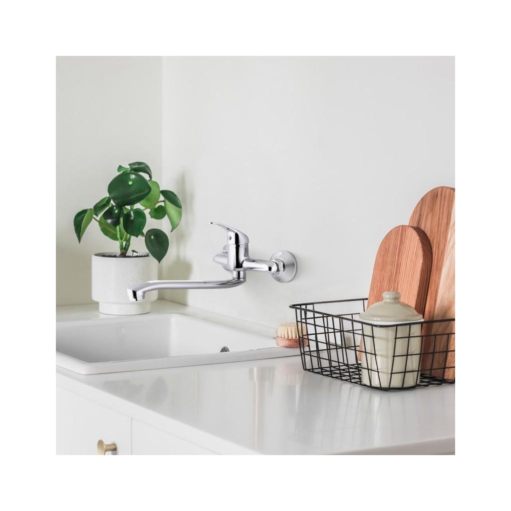 Erga Fizar, falra szerelhető mosogatócsaptelep hosszú kifolyóval, króm, ERG-YKA-BZ.FIZAR-CHR