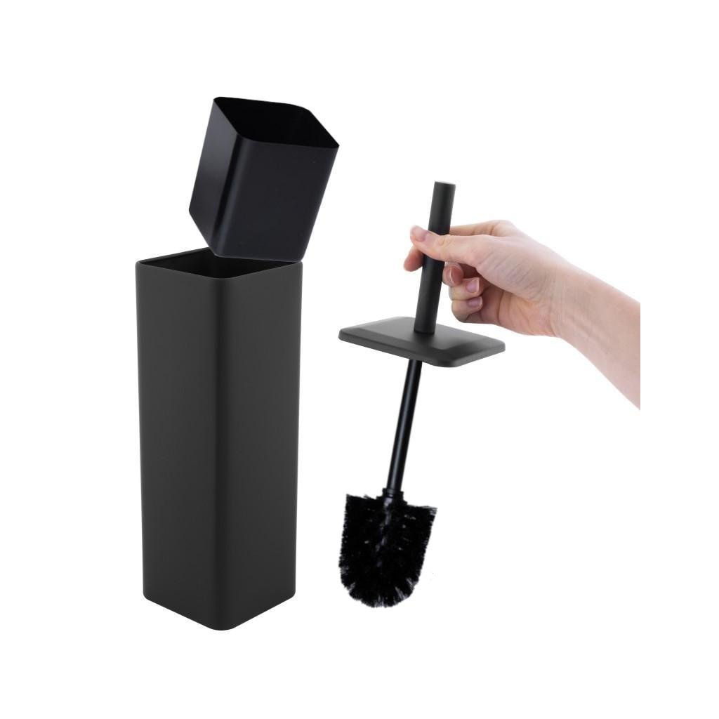 A WC-kefe fekete műanyagból készült, kivehető víztartályral van felszerelve. Ez a praktikus megoldás megkönnyíti a WC körüli higiénia fenntartását, mivel biztosítja a kefe könnyű tisztítását és karbantartását.
