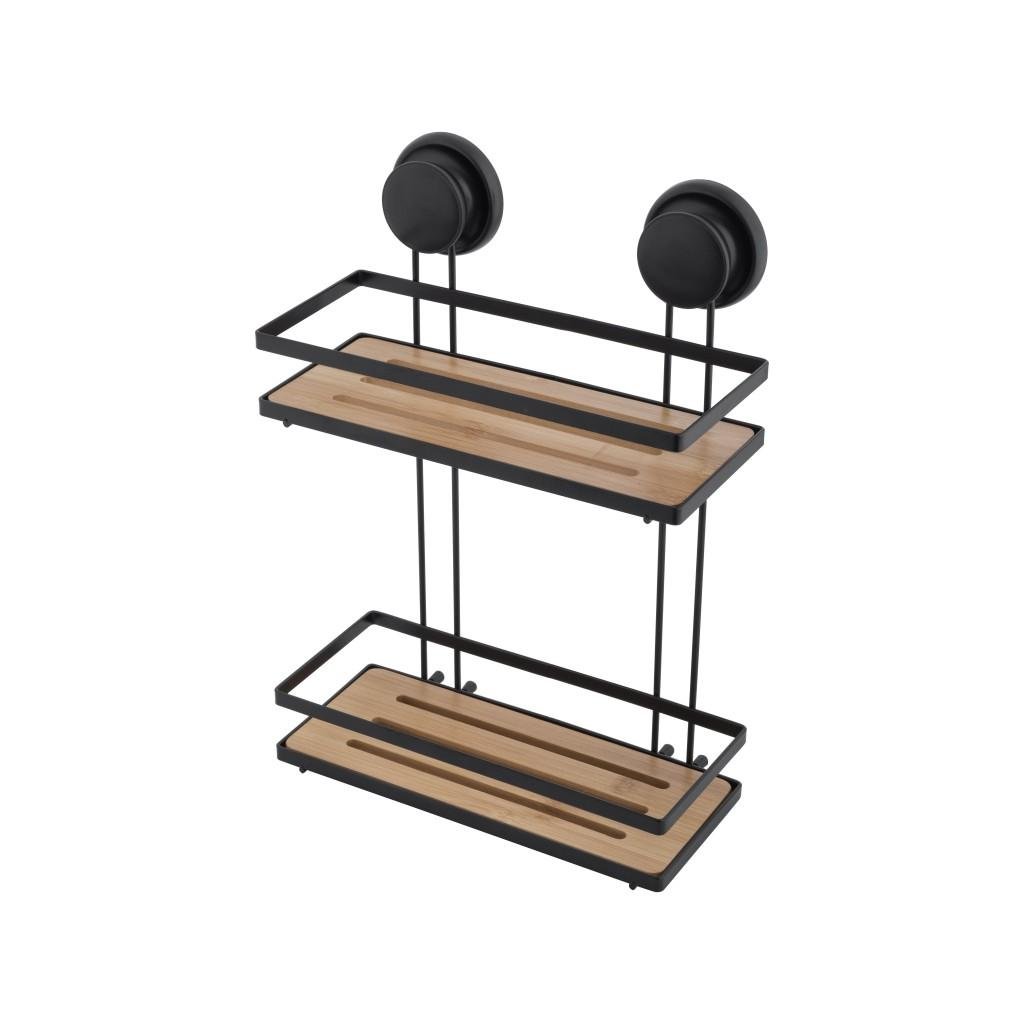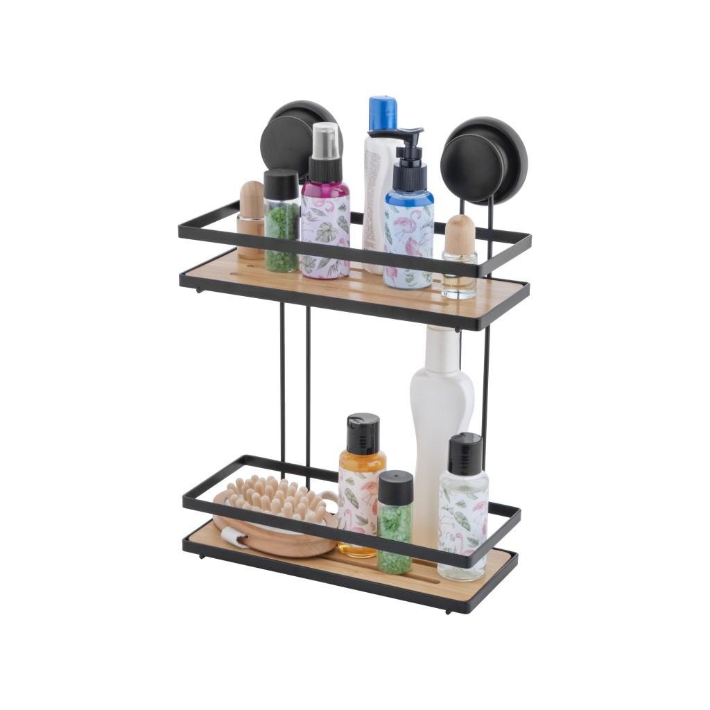 Erga Gavi, dupla kozmetikai kosár 26x10,5x37 cm tapadókorongokhoz, fekete matt-natúr barna, ERG-YKA-CH.GAVI-BP2
