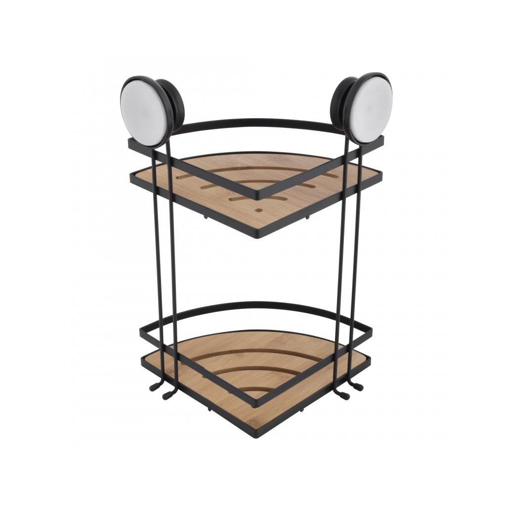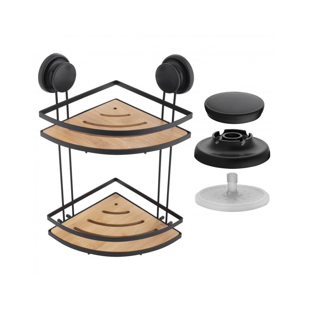 Erga Gavi, sarok dupla polc 26,5x19x36,5 cm tapadókorongokhoz, fekete matt-natúr barna, ERG-YKA-CH.GAVI-BN2