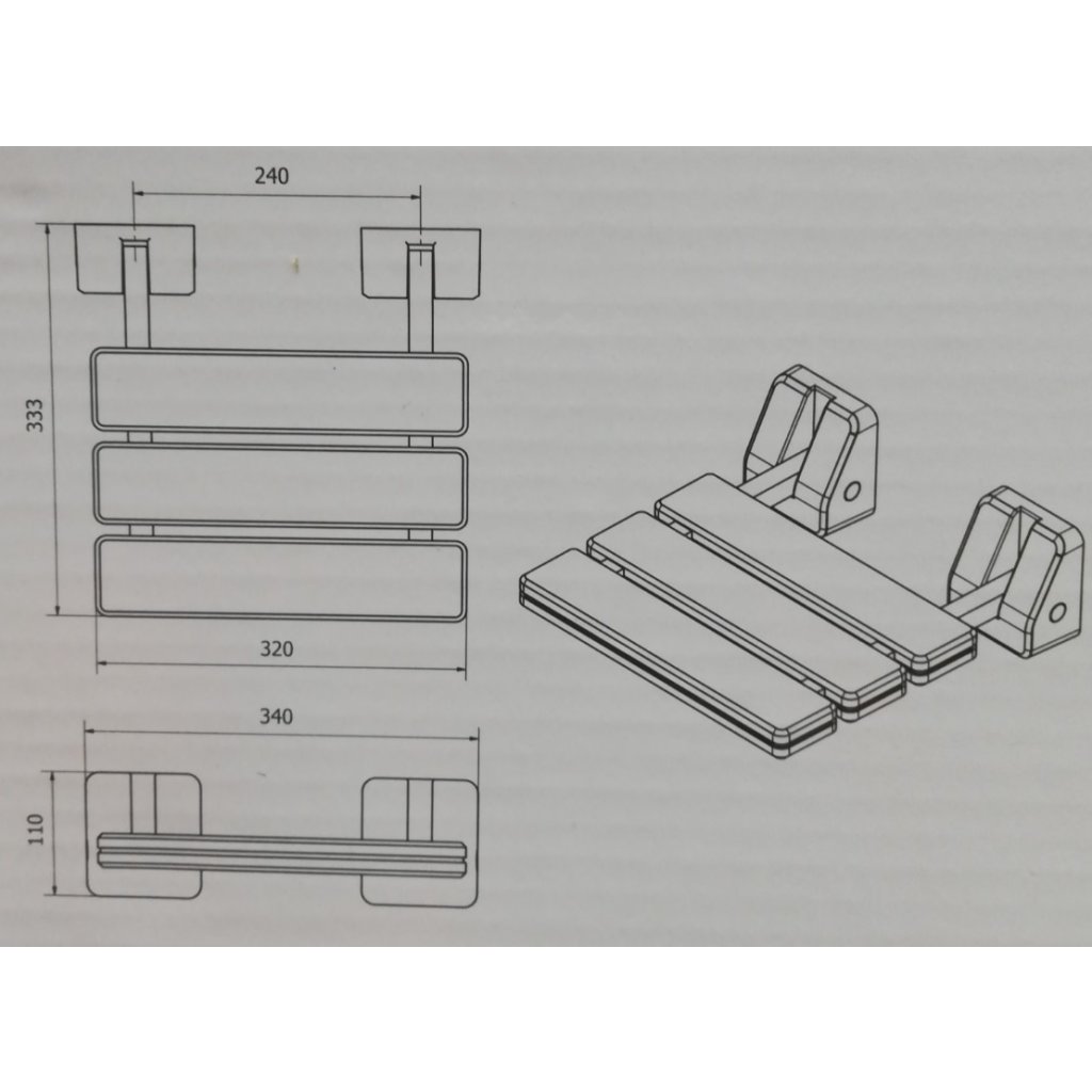 Erga Handicap PRO, falra szerelhető zuhanyülőke összecsukható 320x328 mm, fehér, ERG-07623