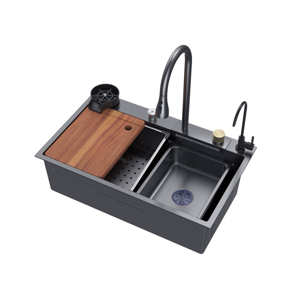 Erga HD, acél mosogató 750x450x215 mm + mosogató csaptelep tartozékokkal, grafit, ERG-MLS-HD7545FY