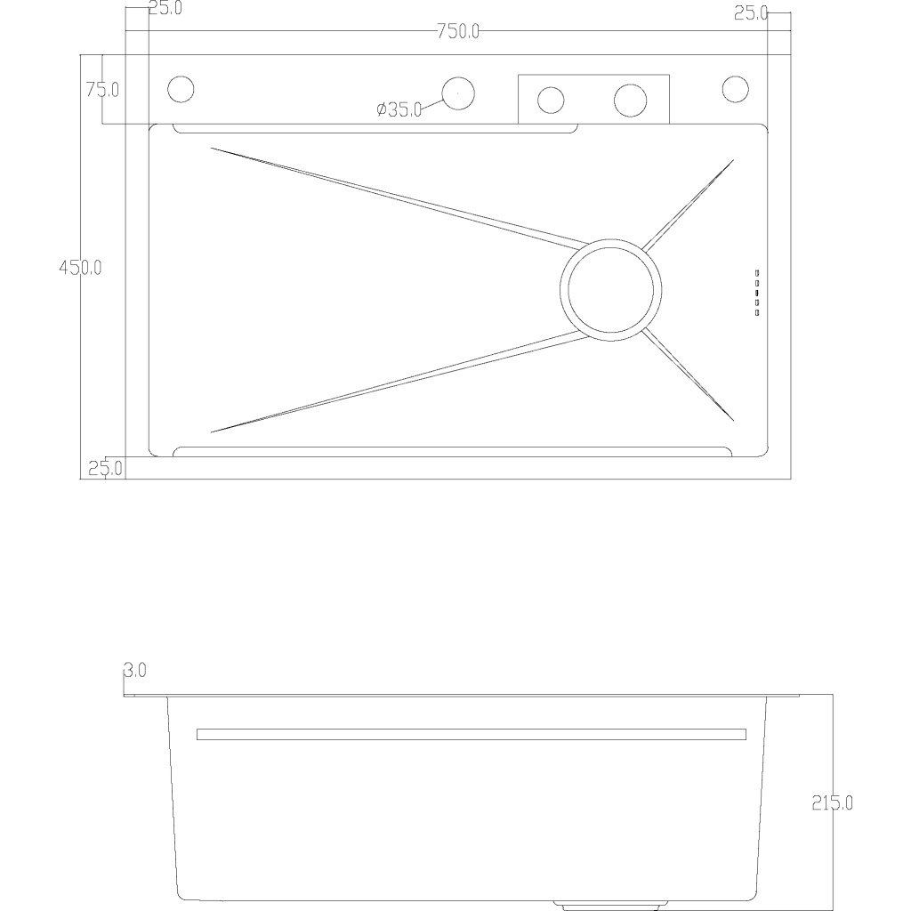 - A konyhai mosogató méretei: 750 x 450 x 215 mm