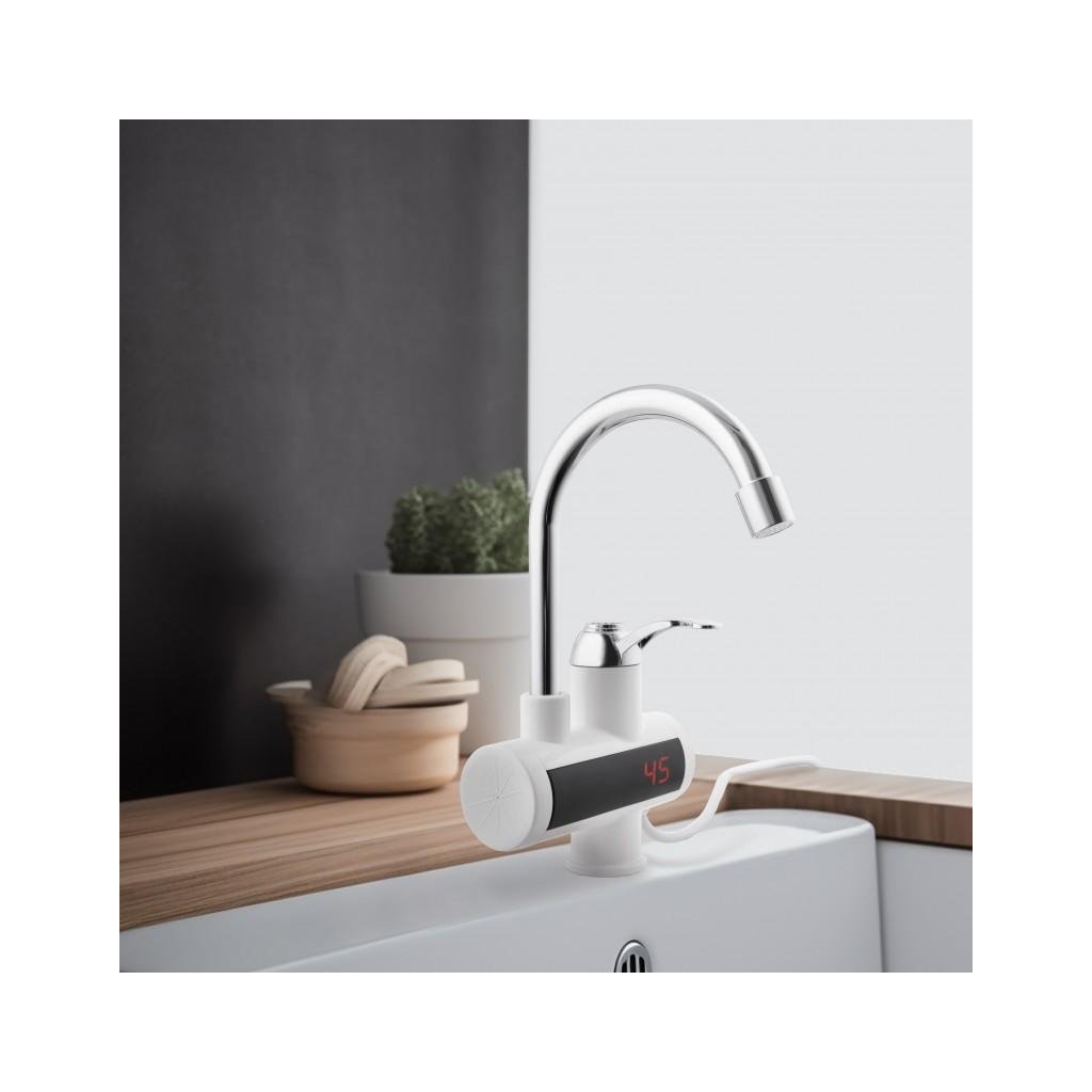 Az LCD kijelzős elektromos vízmelegítő kiváló eszköz azoknak, akiknek azonnali melegvízre van szükségük. Ideális konyhákba, fürdőszobákba, nyaralókba, garázsokba vagy pincékbe. Az akkumulátor lehetővé teszi a víz gyors felmelegítését 60 °C-ra. A fűtőberendezés magas szintű használati biztonságot garantál a magas IPx4 vízálló lefedettségnek köszönhetően. A termék rozsdamentes acélból készült, ami a termék nagy tartósságához és hőállóságához kapcsolódik. A csomag tartalmaz egy 1,2 m hosszú kábelt. Névleges teljesítmény: 3KW-3,6KW