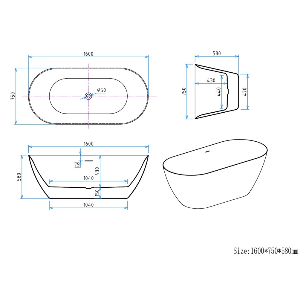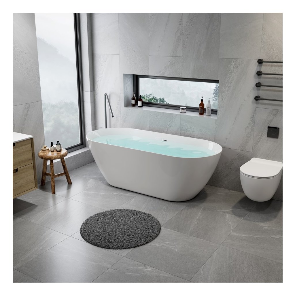 Erga Kaia, szabadon álló kád 160x75 cm + leeresztő csavar, fehér fényes, ERG-Kaia-160075-WH-WH