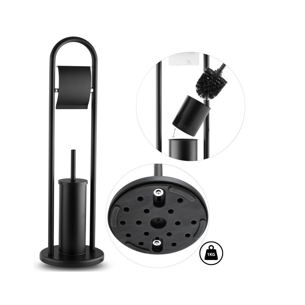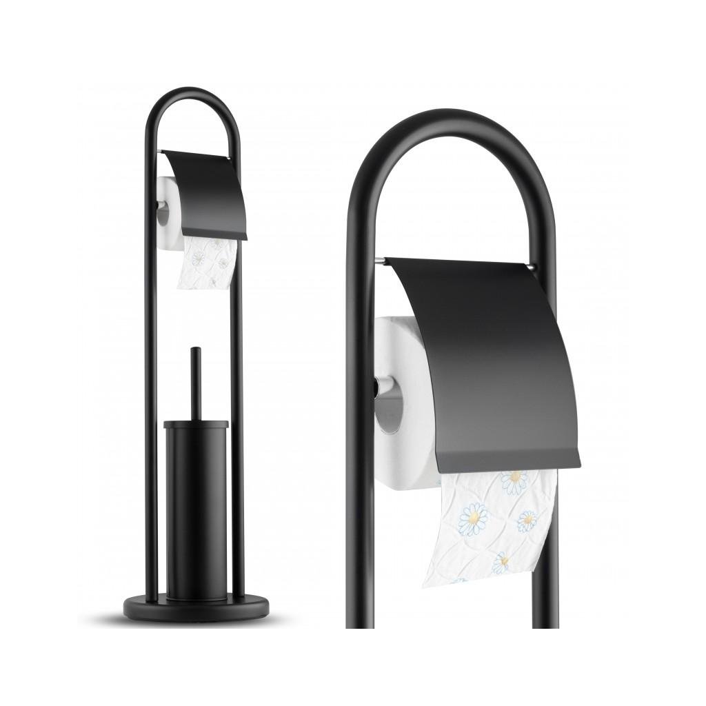 Erga Lazaro, WC-papír és WC-kefe tartó 22x22x80 cm, fekete matt, ERG-YKA-P.LAZARO-BLK
