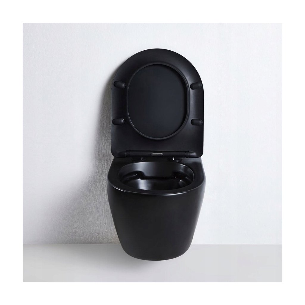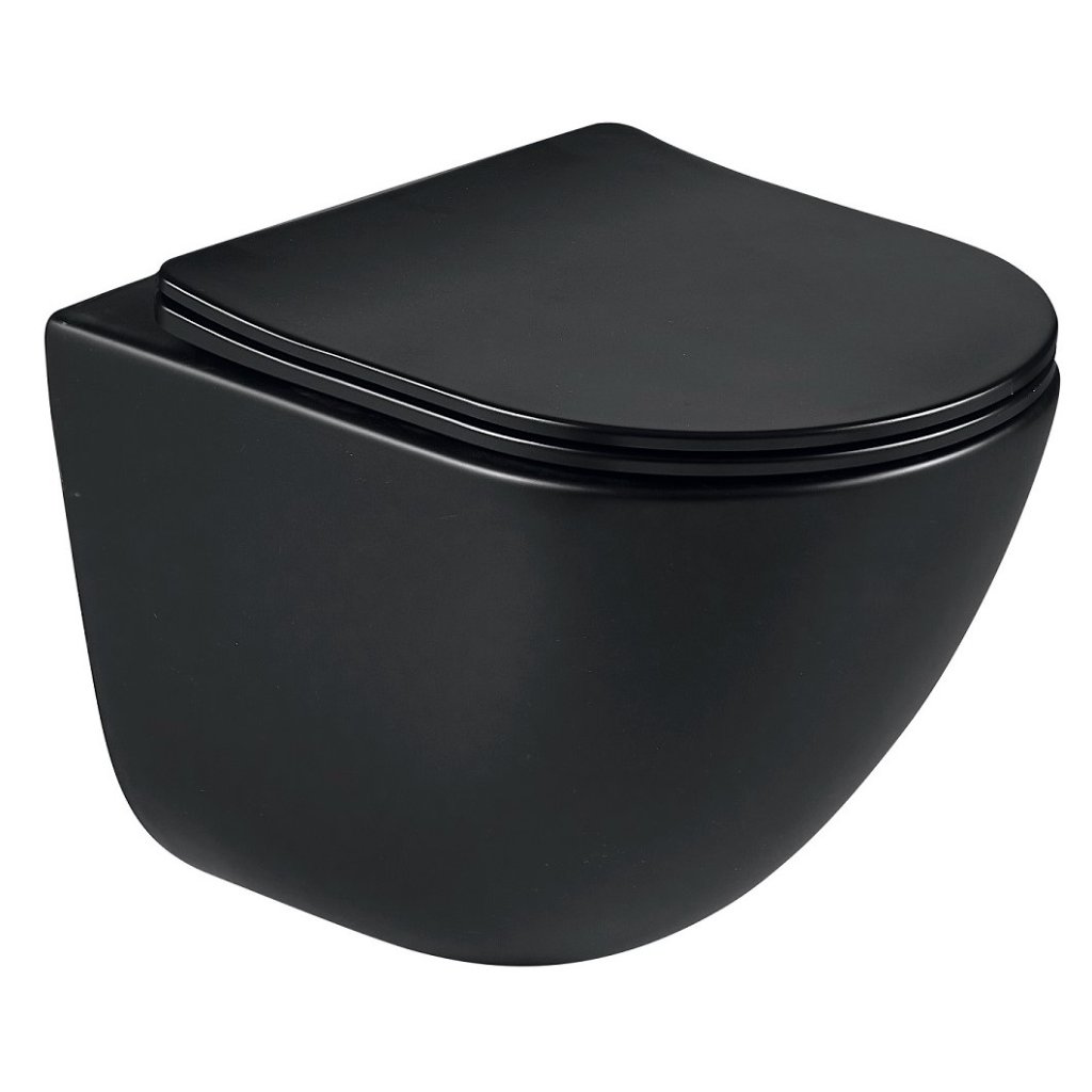 Erga Lily, falra szerelhető wc csésze 48x37 cm, lassan süllyedő ülőfelülettel, fekete matt, ERG-GMAMUT-203BK