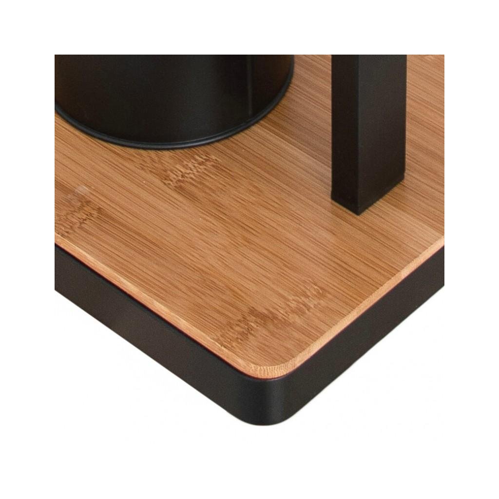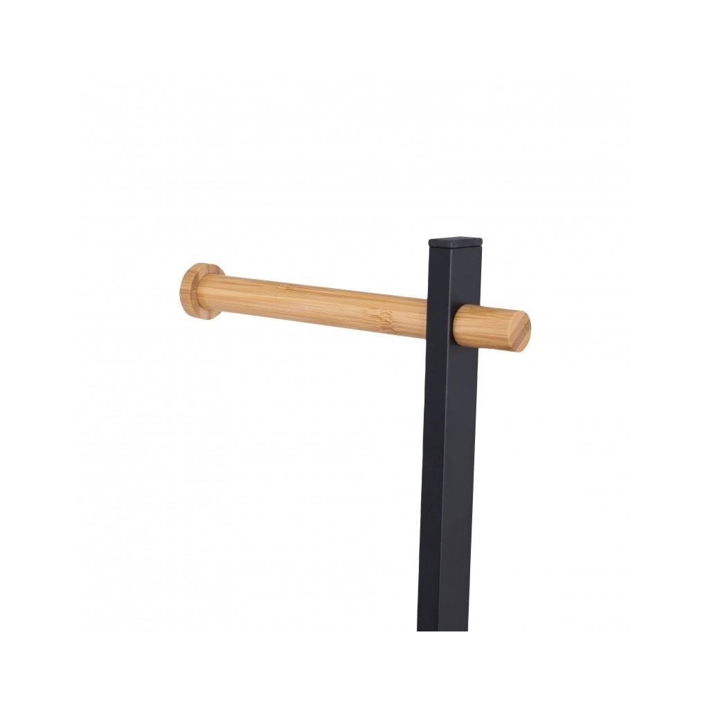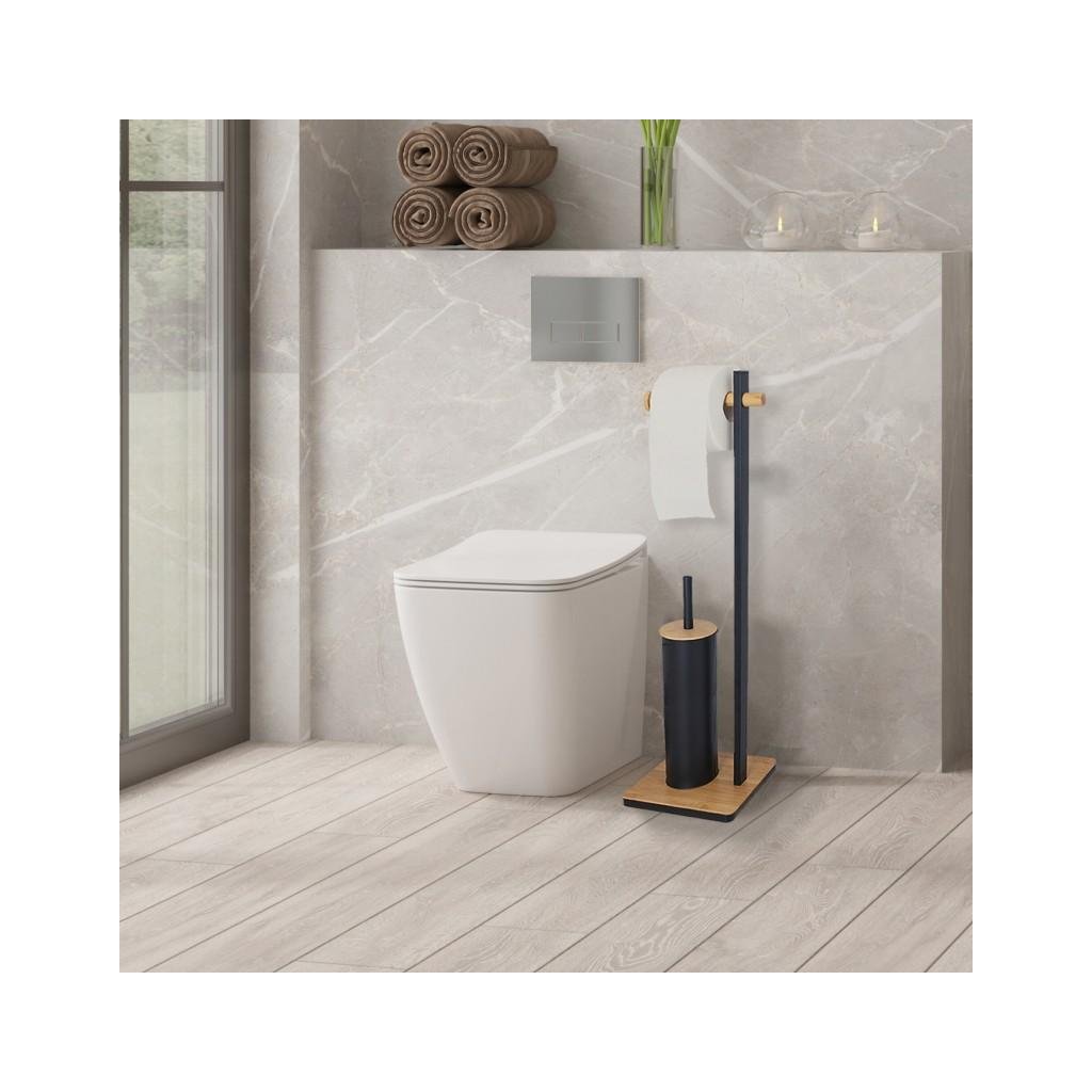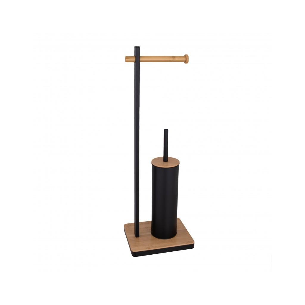 Szabadon álló WC-kefe beépített WC-papír tartóval. Az állvány kiváló minőségű, feketére festett acélból készült. Természetes bambuszfából készült állvány és papírtartó. A kefe védő műanyag tárolóval rendelkezik, amely véd a rozsdától és megkönnyíti a tisztítást. A széles, fekete acélvázzal bevont alap kiváló stabilitást biztosít.
