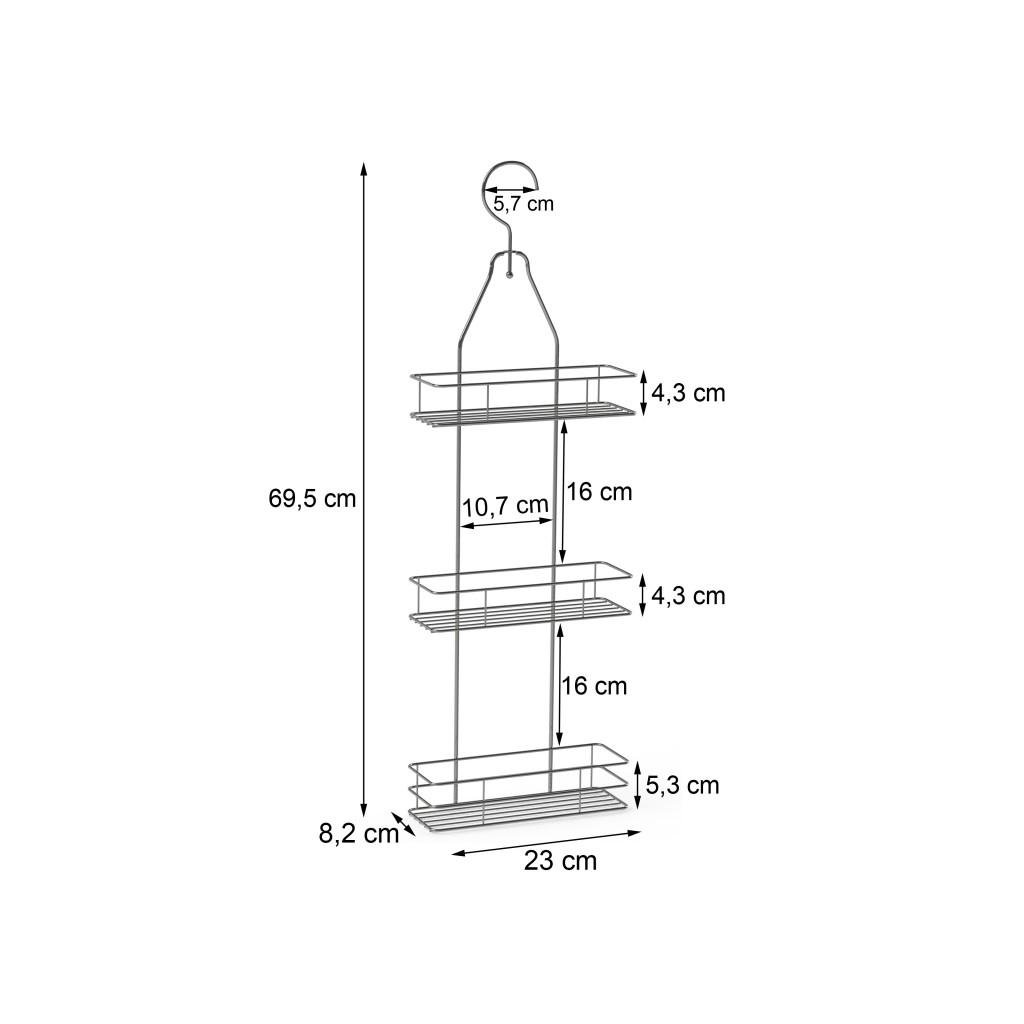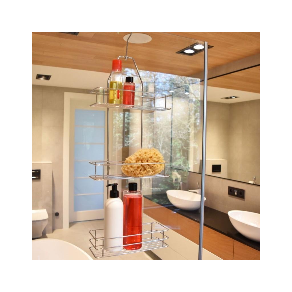 Háromszintes falra szerelhető fürdőszobai kosár krómozott acélból. Praktikus és egyszerű rögzítés zuhanyhoz, zuhanytartóhoz vagy melegítőhöz. Kényelmes szerelés fúrás vagy ragasztás nélkül. A horog, amelyen a kosár függ, forgatható (360°), így a kosarat bárhová felakaszthatod. Nem csak magánházakba, hanem szállodákba, panziókba is ajánljuk.