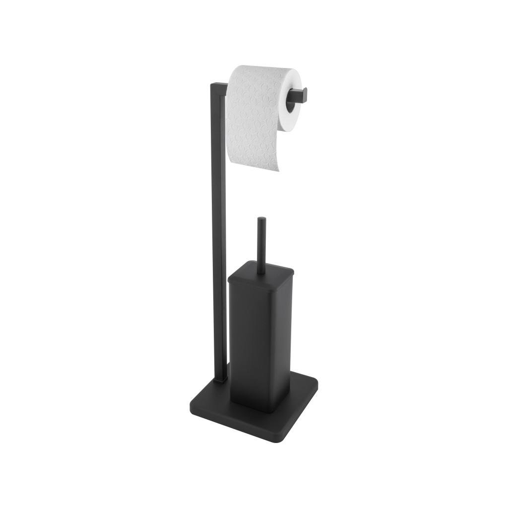 Erga Marko, WC-papír és WC-kefe állvány 20x20x65 cm, fekete matt, ERG-YKA-PD.MARKO-BLK