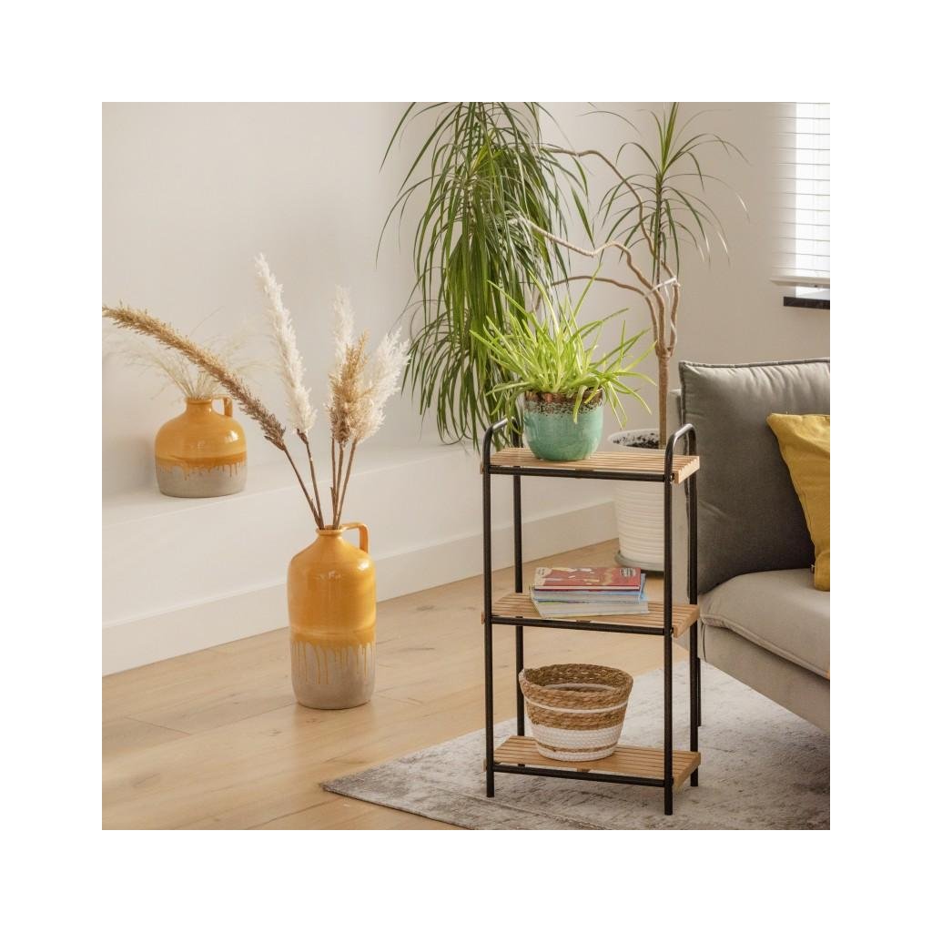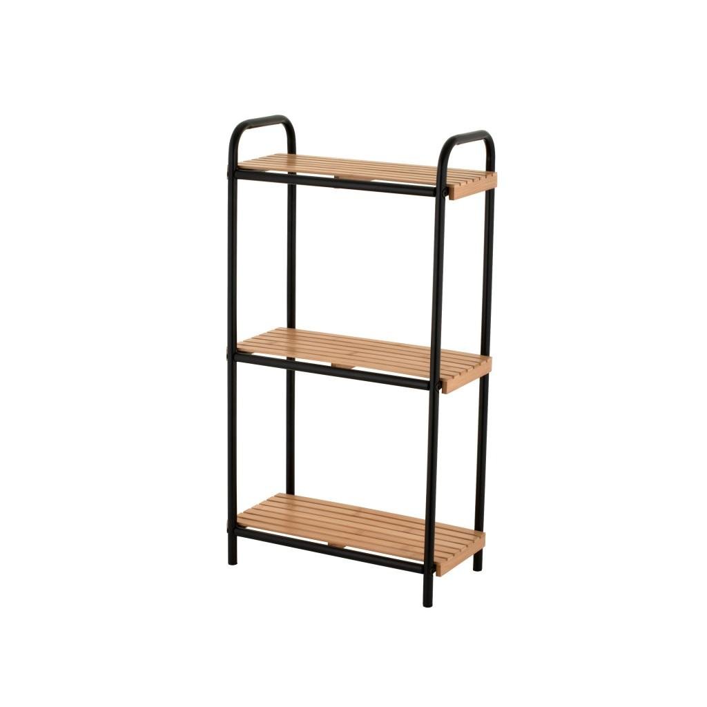Erga Mike, fém fürdőszobai hárompolcos polc állóra 41,5x11x77 cm, fekete-natúr barna, ERG-YKA-P.MIKE