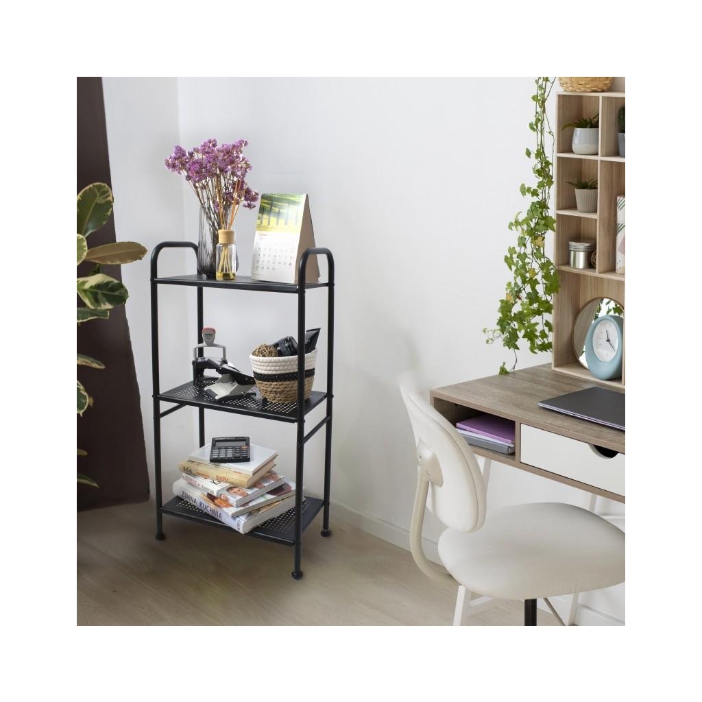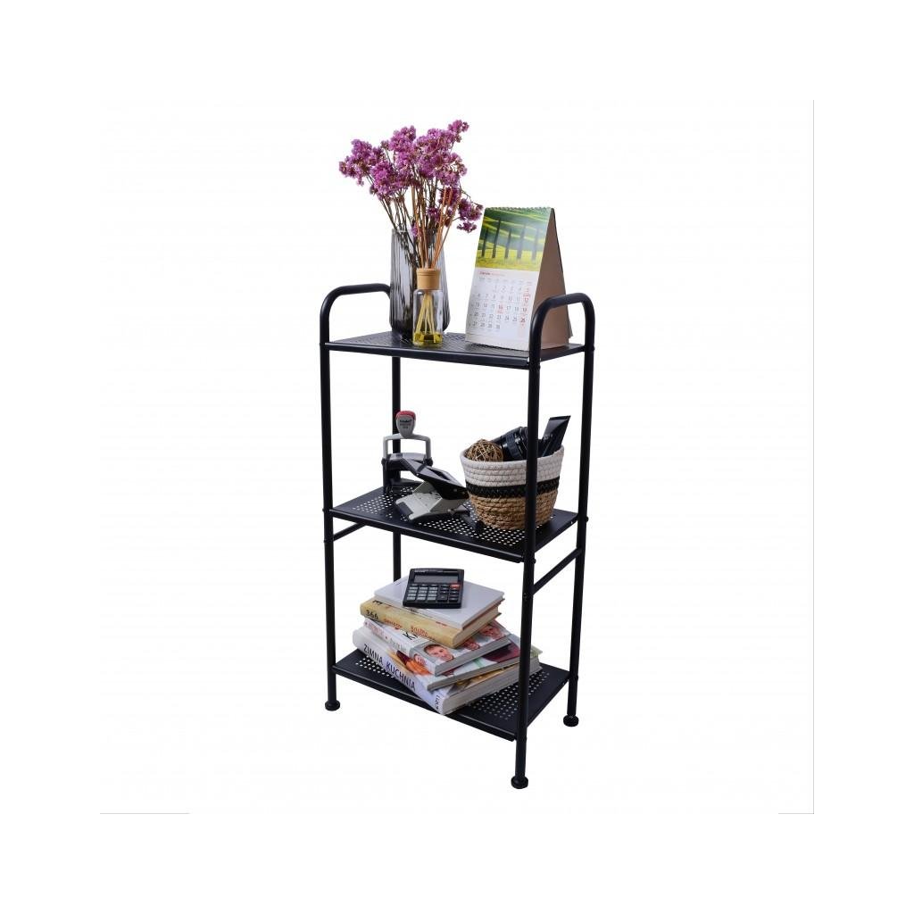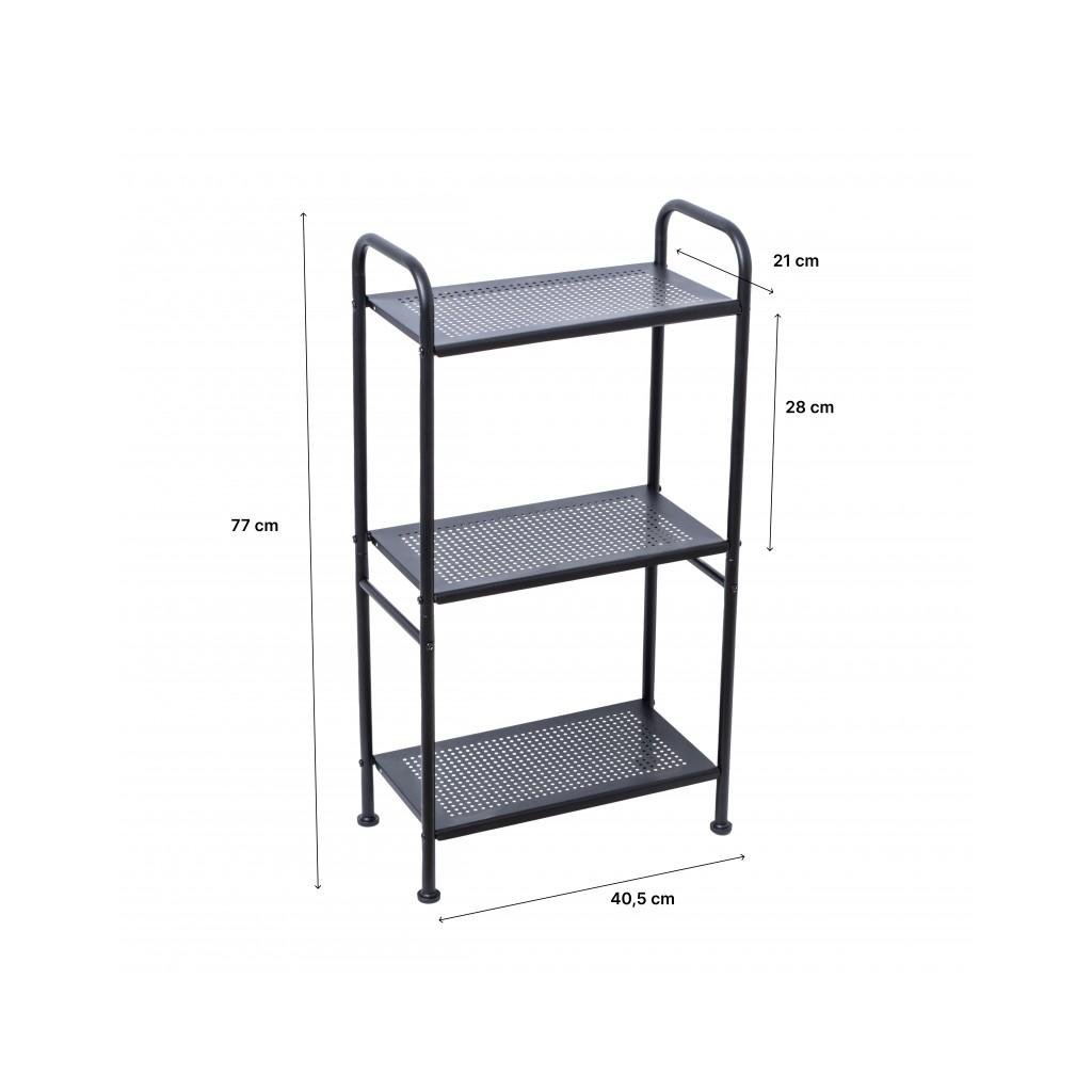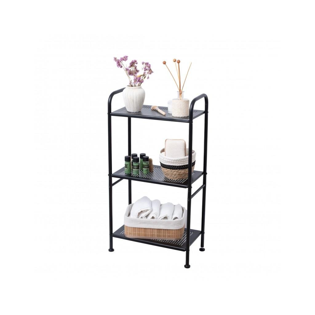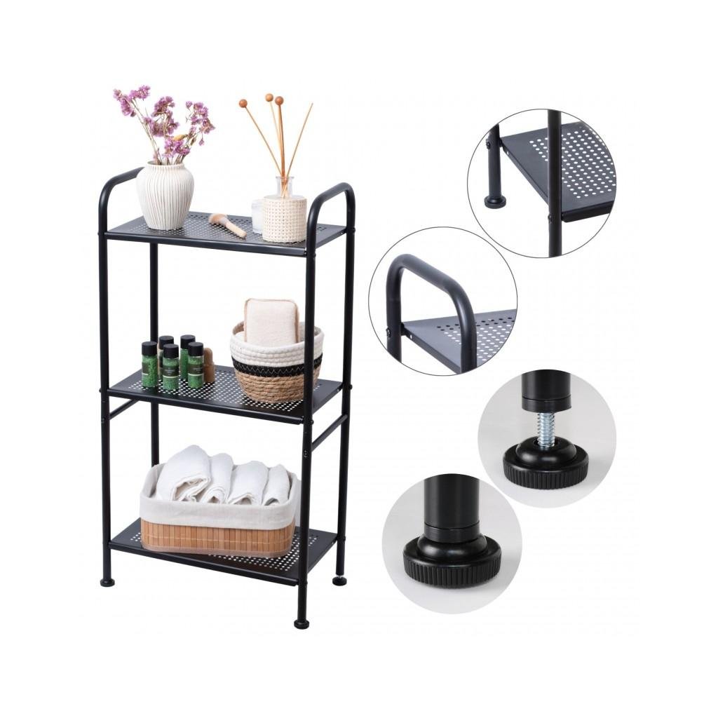 A fekete fürdőszobai polctartó nemcsak praktikus tárolóhelyként szolgál, hanem dizájntartozék is, amely eleganciát és stílust varázsol szobájába. A kiváló minőségű porszórt acélból készült könyvespolc 3 tágas polccal rendelkezik, amelyek tökéletesen megfelelnek szervezeti igényeinek. A polcok felületén lévő kis lyukaknak és a lábak magasságának beállítási lehetőségének köszönhetően a könyvespolc nem csak megjelenésével nyűgöz le, hanem a legmagasabb funkcionalitást is garantálja.