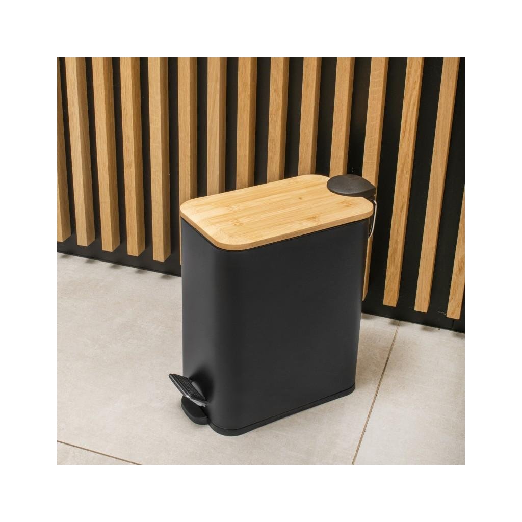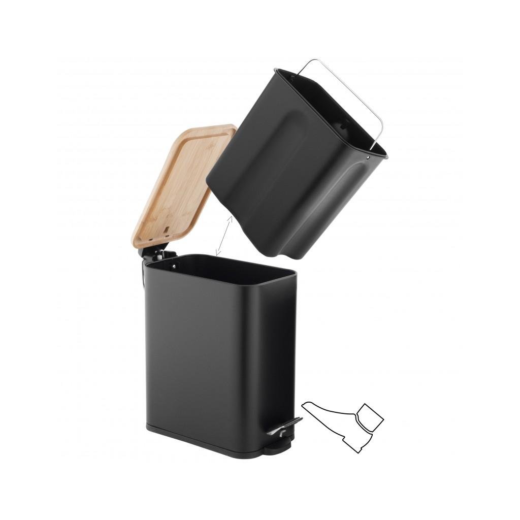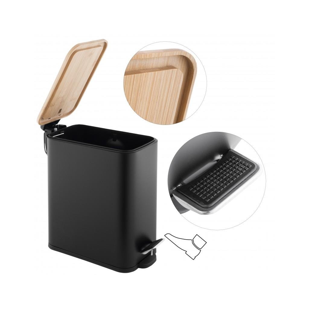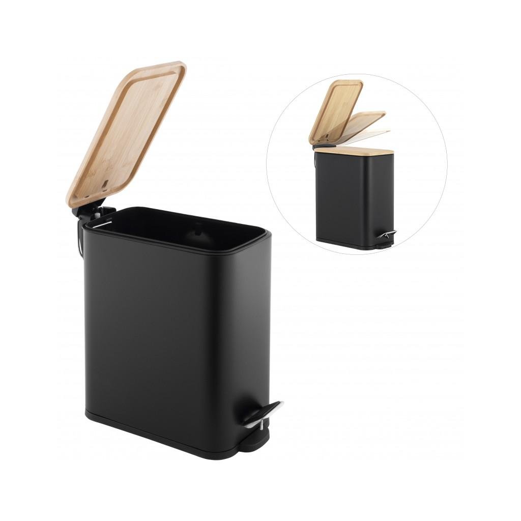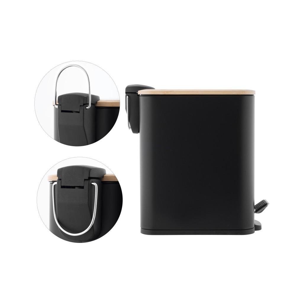 Erga Moby, téglalap alakú hulladékgyűjtő 5l, fekete matt-natúr barna, ERG-YKA-CH.MOBY-5-BLK