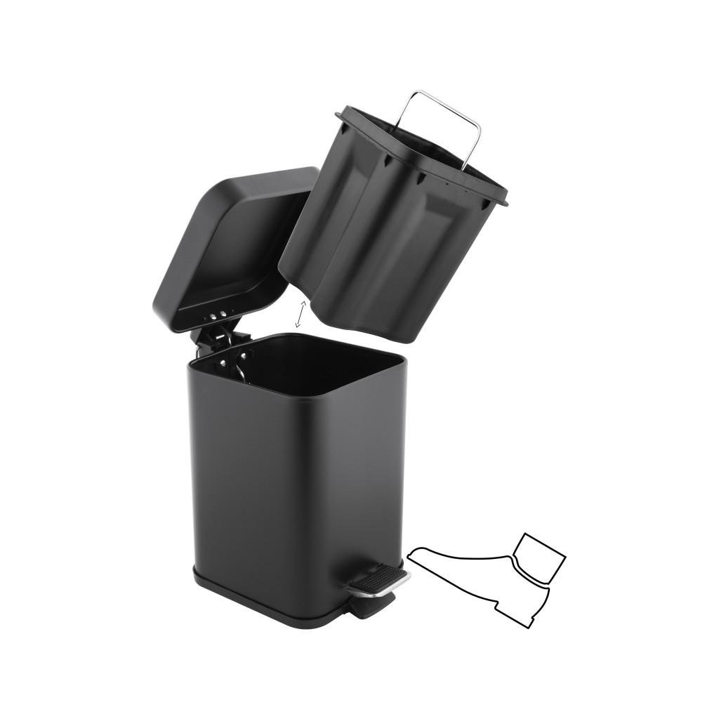 Erga Muti, négyzet alakú szemetes 3l álló, Soft-Close zárás, fekete matt, ERG-YKA-CH.MUTI-SC-BLK