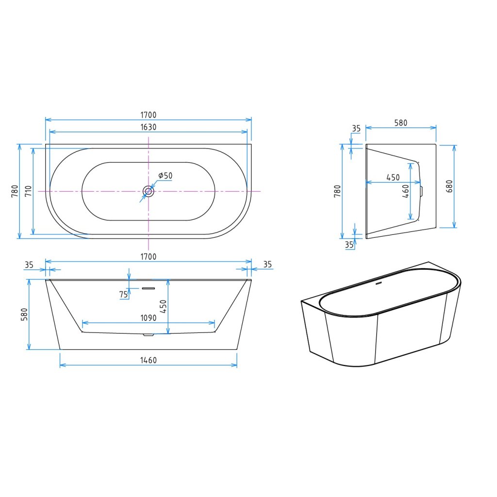 - Típus: sarok szabadon álló kád
