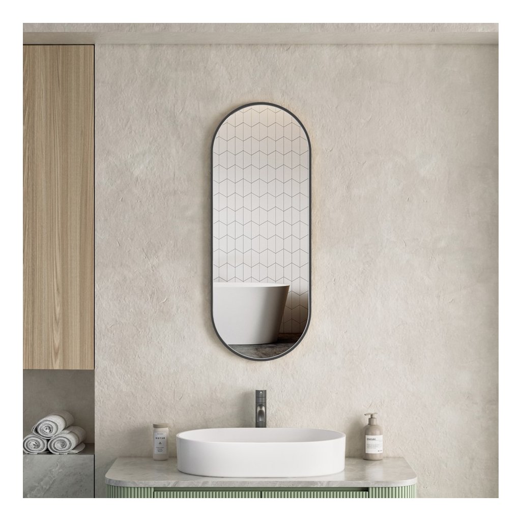Erga Oval, ovális tükör 35x90cm, fekete keret, ERG-V01-OVAL-3590-BK