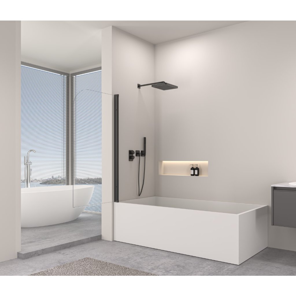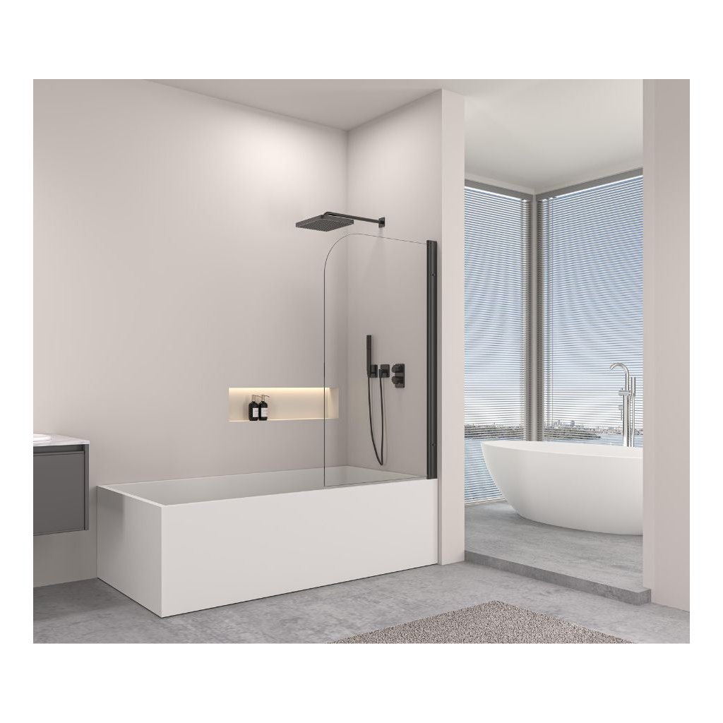Erga Ozark, 1 szárnyú kádparaván 75x140 cm, 6mm átlátszó üveg, fekete profil, ERG-V02-OZARK-075-BK