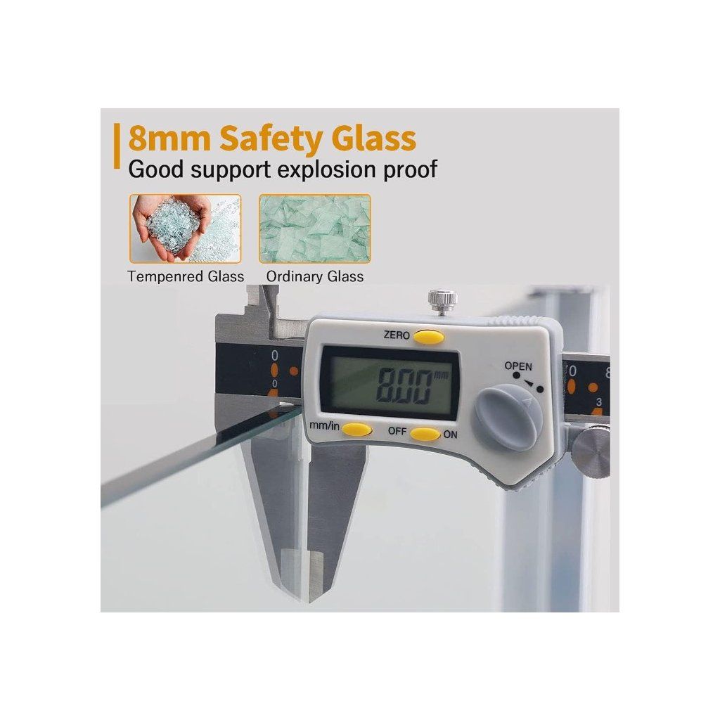| 8 mm-es edzett üveg | Az ERGA tanúsítvánnyal rendelkező, 8 mm vastag ESG üveg hosszú évekre garantálja a biztonságos használatot. A 8 mm-es üveg erősebb, mint a hagyományos, vékonyabb 5/6 mm-es üveg, amelyek versenyképes ajánlatokban kaphatók, és garantálja a zuhany biztonságos használatát gyermekek és idősek számára. | |