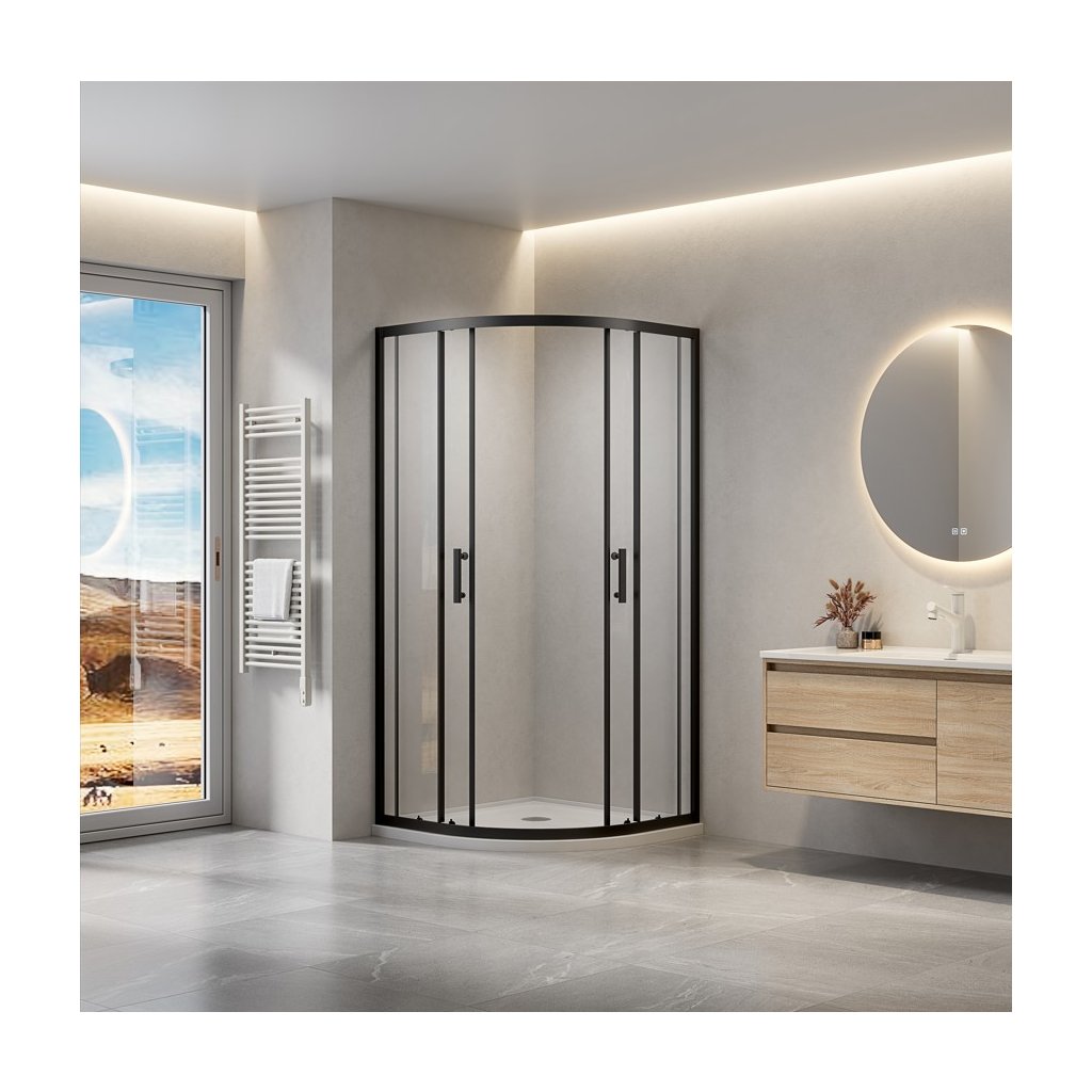 - Típus: negyedkör alakú sarok zuhanykabin tolóajtóval