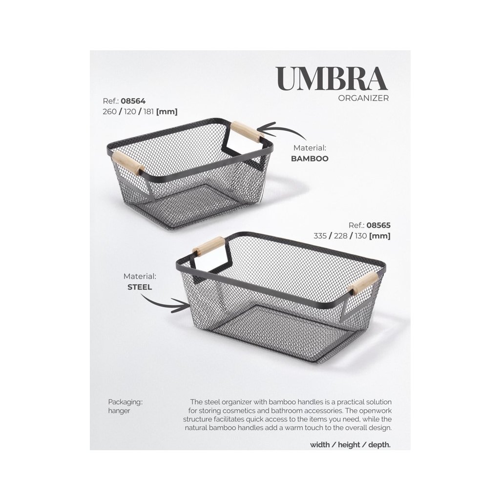 Erga Plain, kozmetikai drótkosár 260x120x181 mm, fekete matt-barna, ERG-08564
