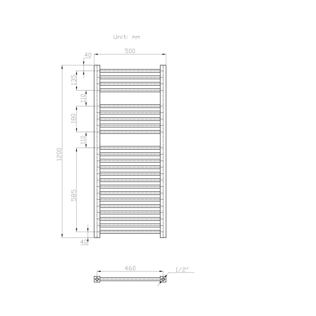 Erga Proper, radiátor 1200x500 mm, 709W, fekete, ERG-LAV-PROP-12050-BK