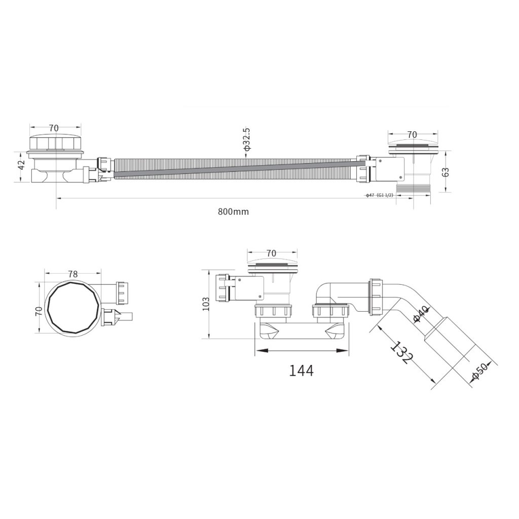 - Típus: automata kádszifon túlfolyóval / Bowden huzalos lefolyóvezérléssel