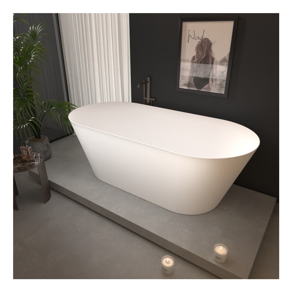 Erga Rhea, szabadon álló kád 130x70 cm + lefolyódugó, fehér fényes felülettel, ERG-RHEA-130070-WH-WH