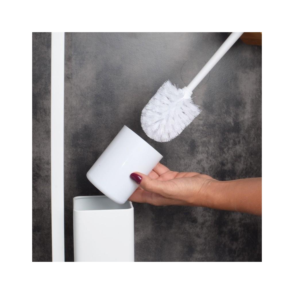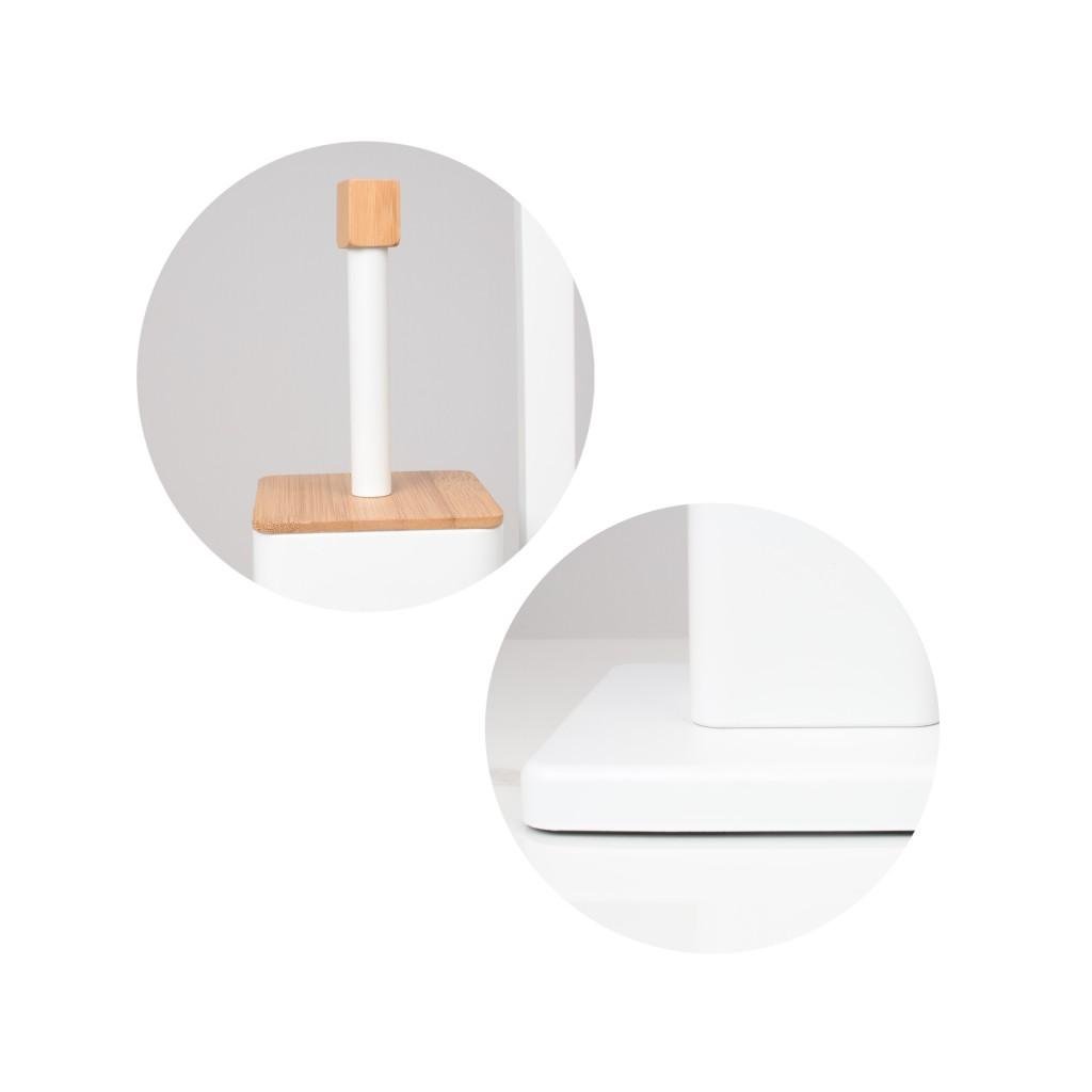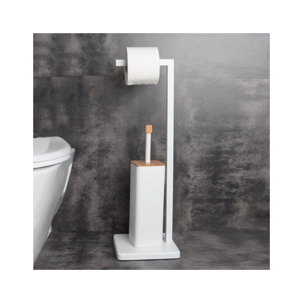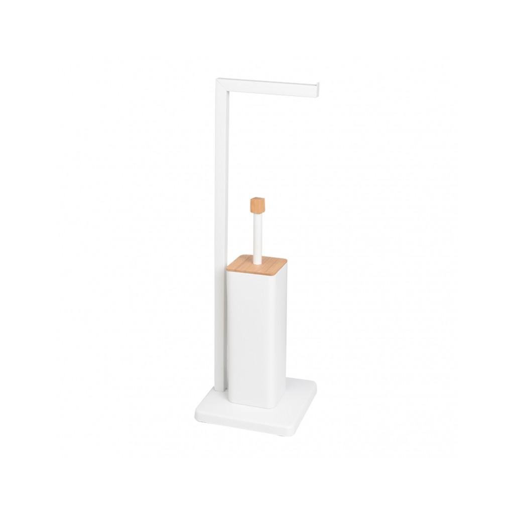 Szabadon álló WC-kefe beépített WC-papír tartóval. Az állvány kiváló minőségű, fehérre festett acélból készült. Természetes bambuszfából készült ecsethuzat. A kefe védő műanyag tárolóval rendelkezik, amely véd a rozsdától és megkönnyíti a tisztítást. A csúszásmentes talp nagy stabilitást biztosít az állványnak.