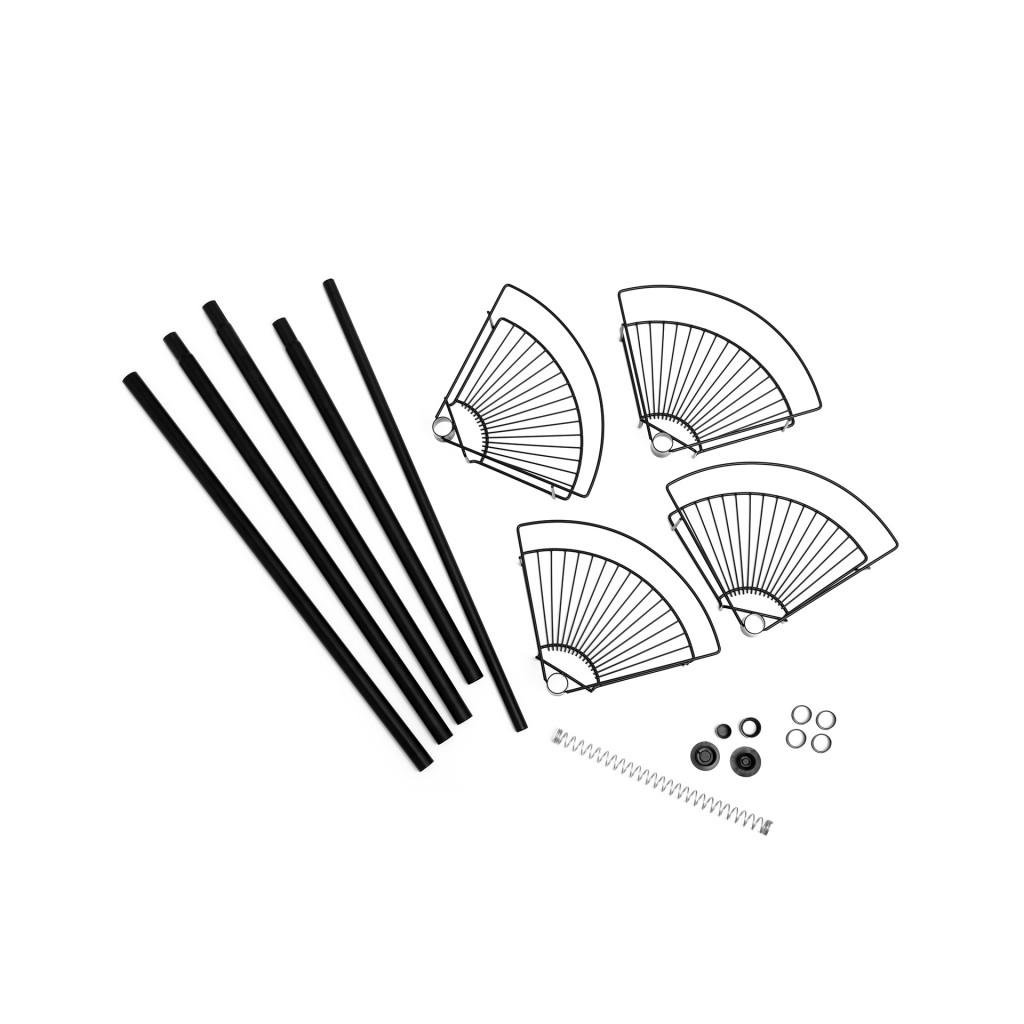 - Alapkivitelben (a rugónak köszönhetően) a rögzítő rúd 256 cm - 276 cm tartományban állítható. Ezenkívül az egyes oszlopok eltávolításával csökkenthetjük a magasságát.