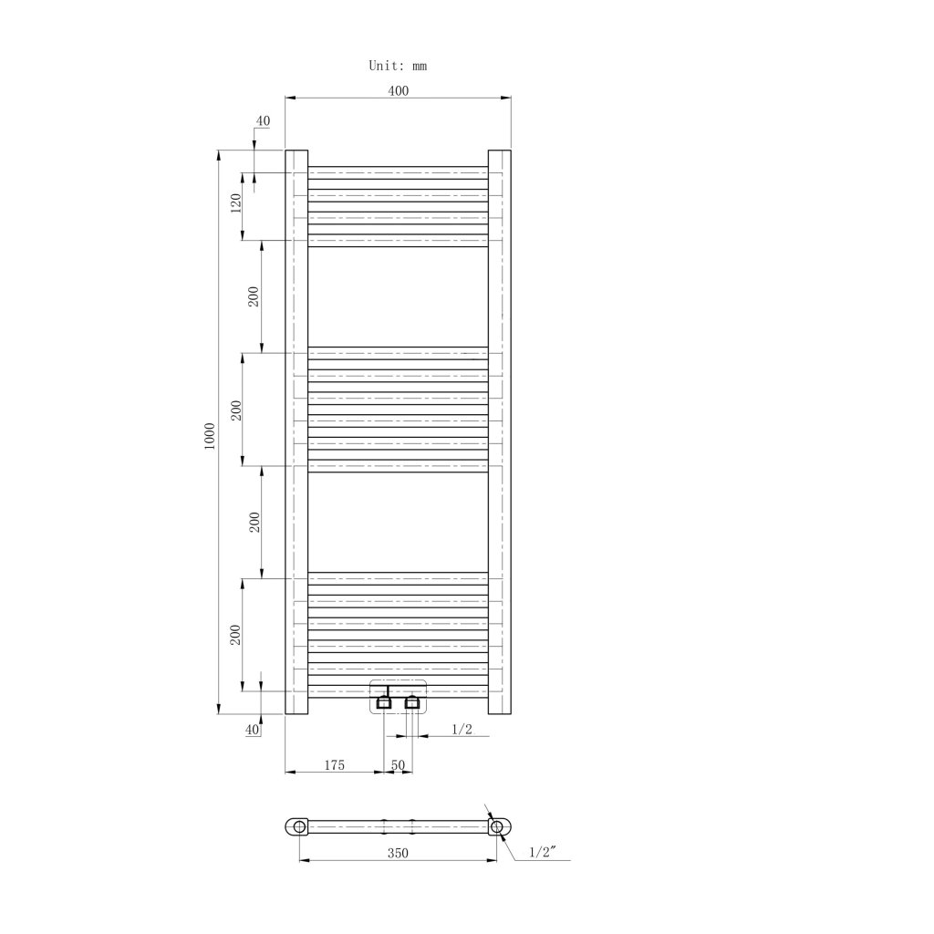 Erga Simple, fűtőelem 1000x400 mm, 332 W, fekete, ERG-LAV-SIMP-10040-BK