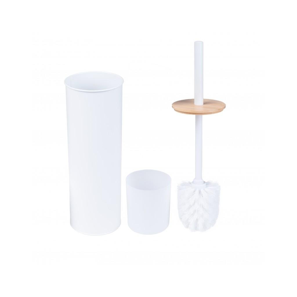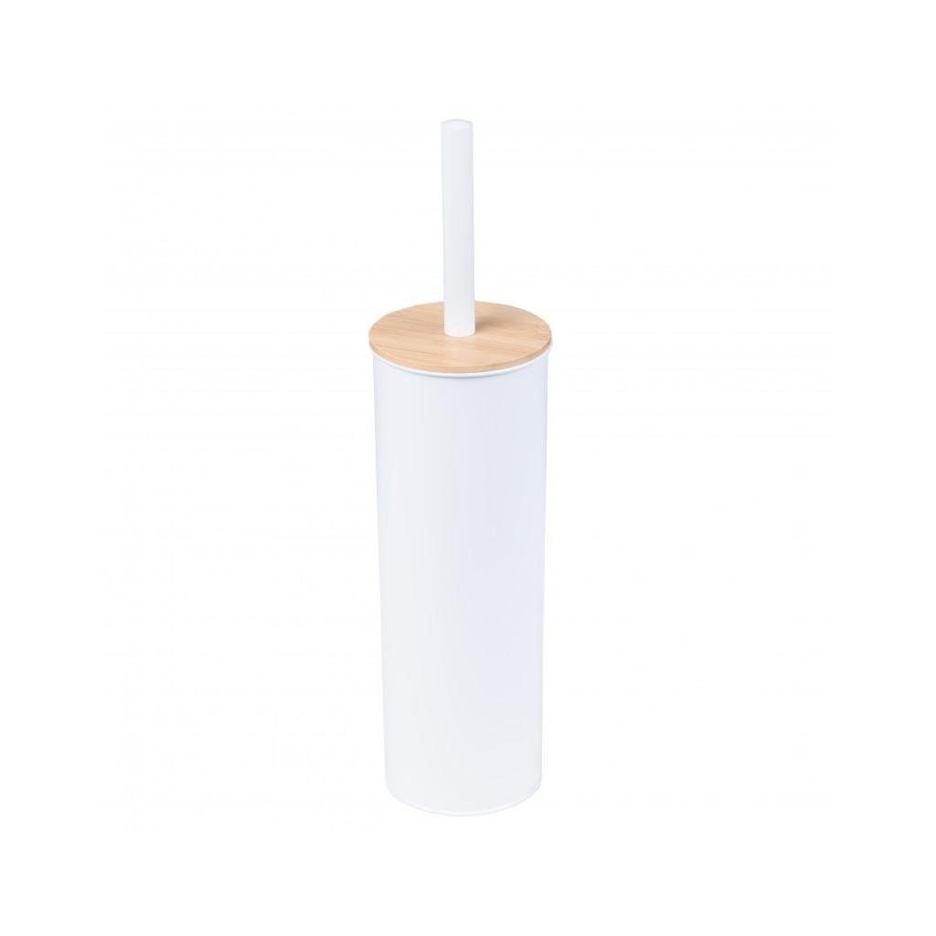 Erga Amba, négyszögletes WC kefe állóhoz, fehér matt-natúr barna, ERG-YKA-PD.AMBA-WHT