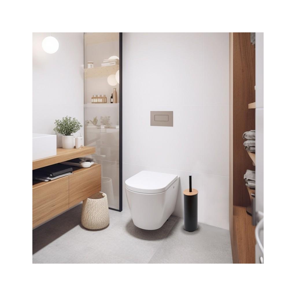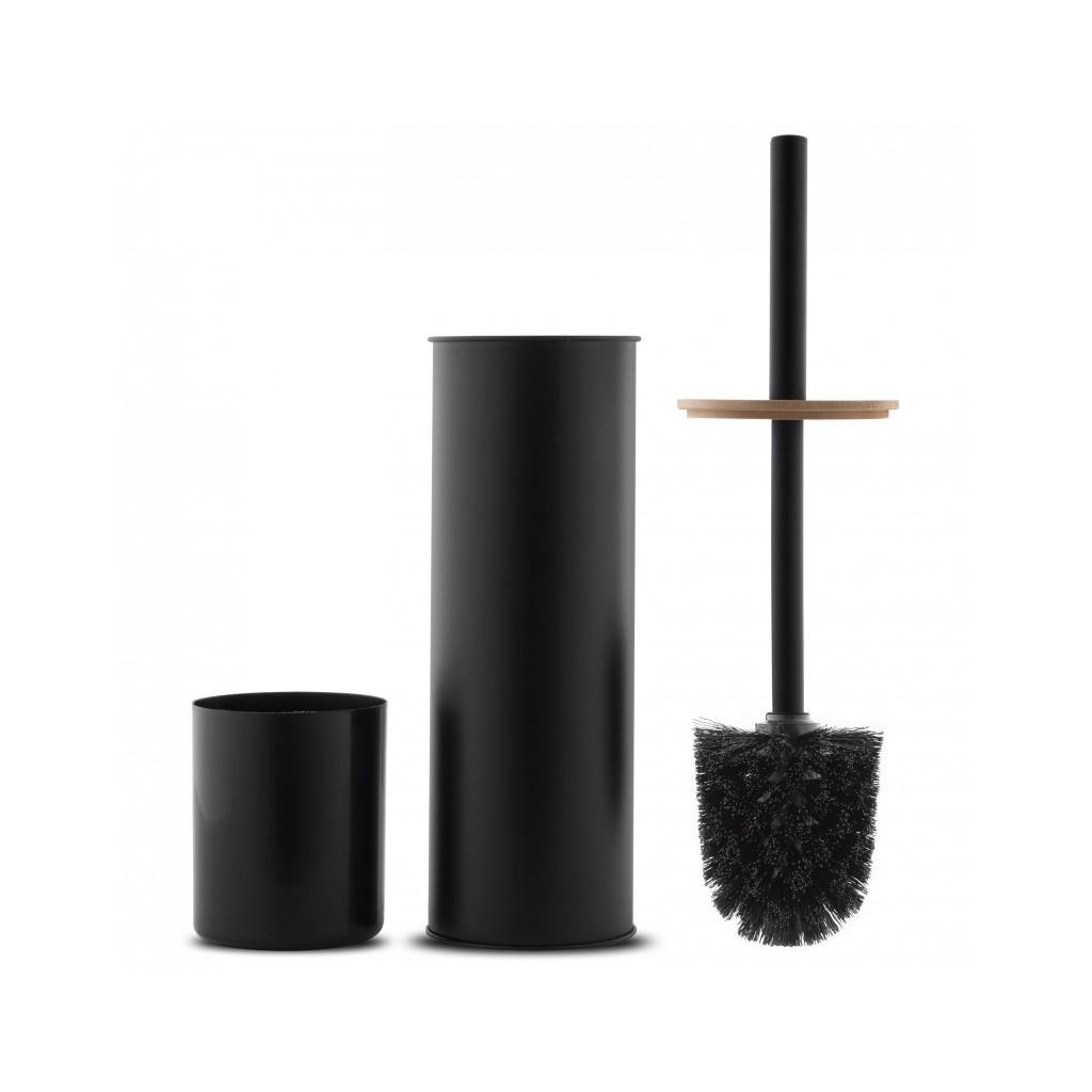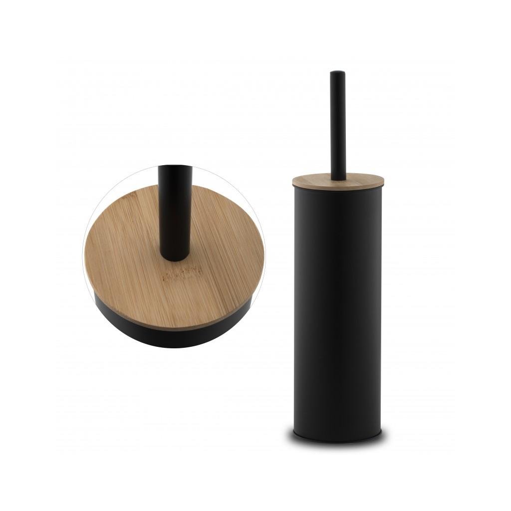 A WC kefe kiváló minőségű fekete lakkozott acélból készült, természetes bambuszfa elemekkel. A tartály belsejében egy levehető műanyag burkolat található a víz csepegtetéséhez, így a benne lévő kefetartály száraz és tiszta.