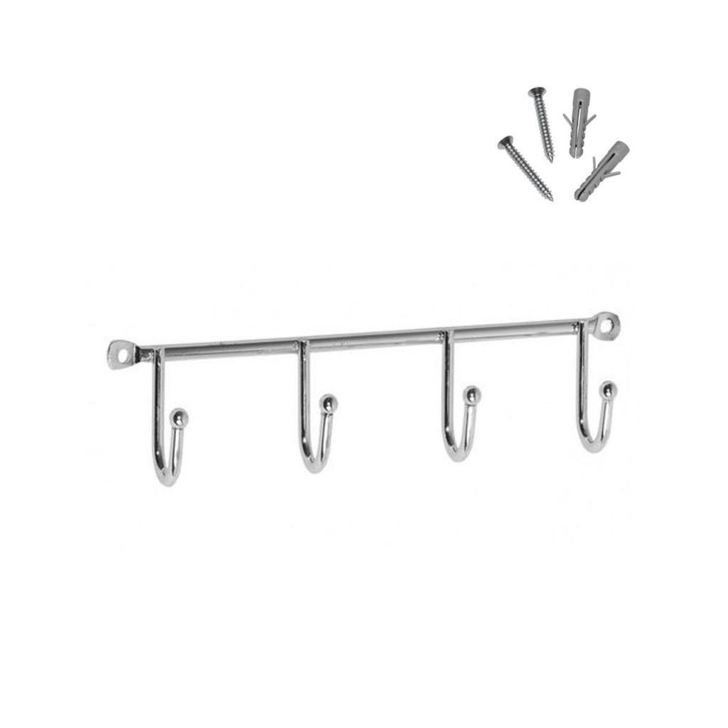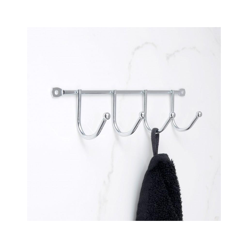 Fürdőszoba törülközőtartó, falra szerelhető fali csatlakozókkal ( a csomag tartalmazza ). Négy horog van rajta. Acélhuzalból készült, 3-szintű krómozással. Praktikus és tartós megoldás. A tartó nem csak a fürdőszobában használható. Modern vagy klasszikusan kivitelezett enteriőrbe illeszkedik.