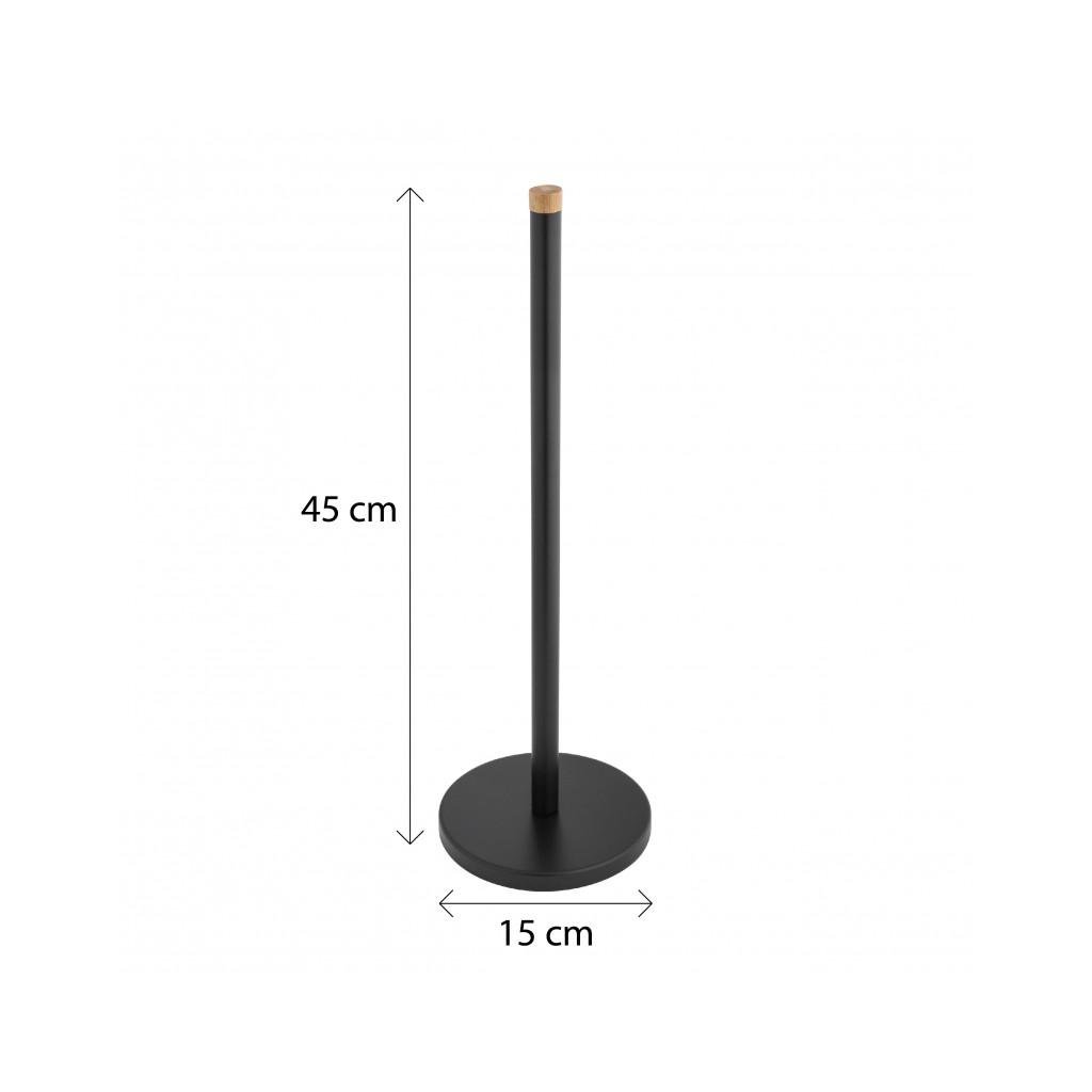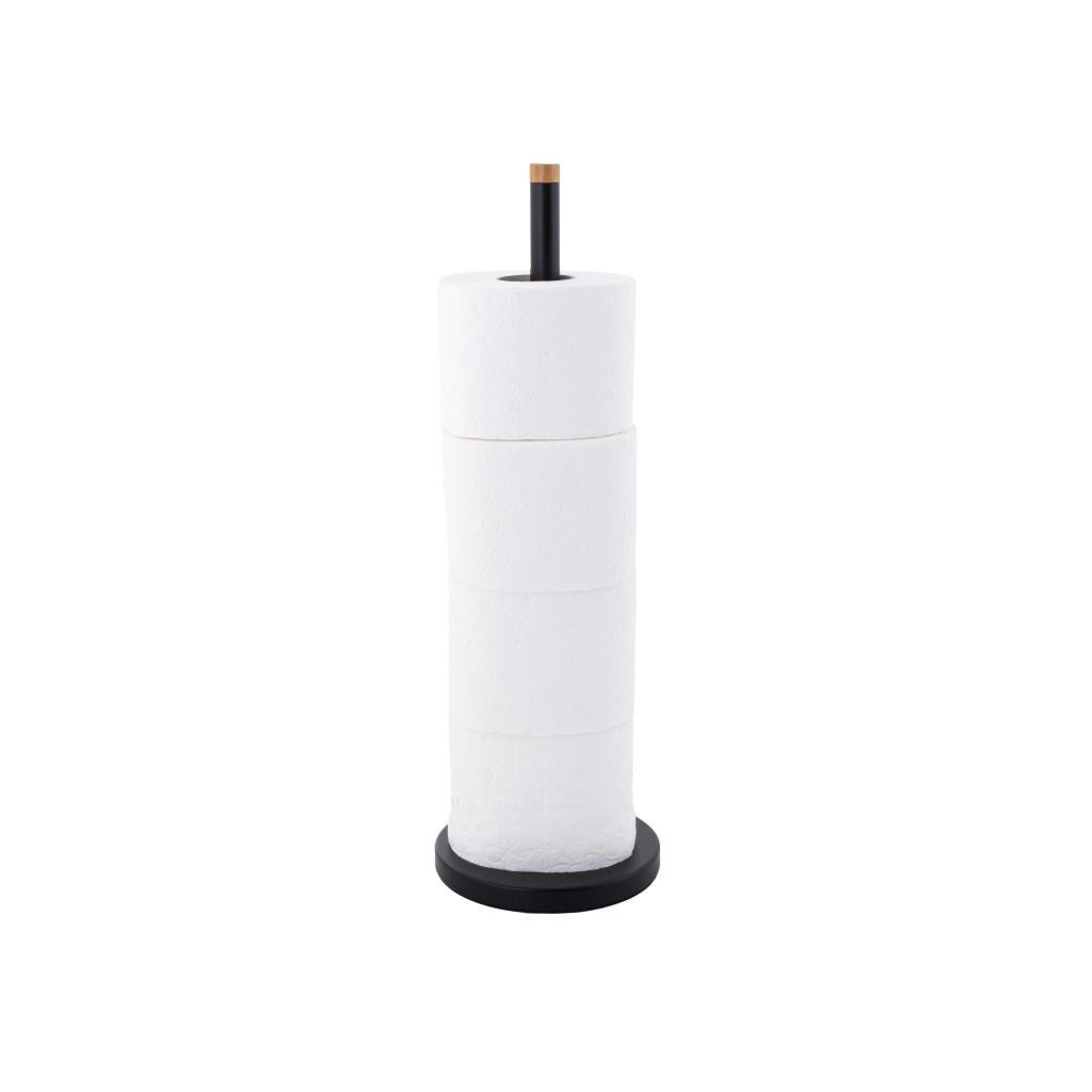 Praktikus állvány festett acélból készült tartalék WC-papír tárolására. A tartóba akár 4 papírtekercs is belefér. Az alapon csúszásmentes szőnyeg található. A bot vége természetes bambuszfából készült.