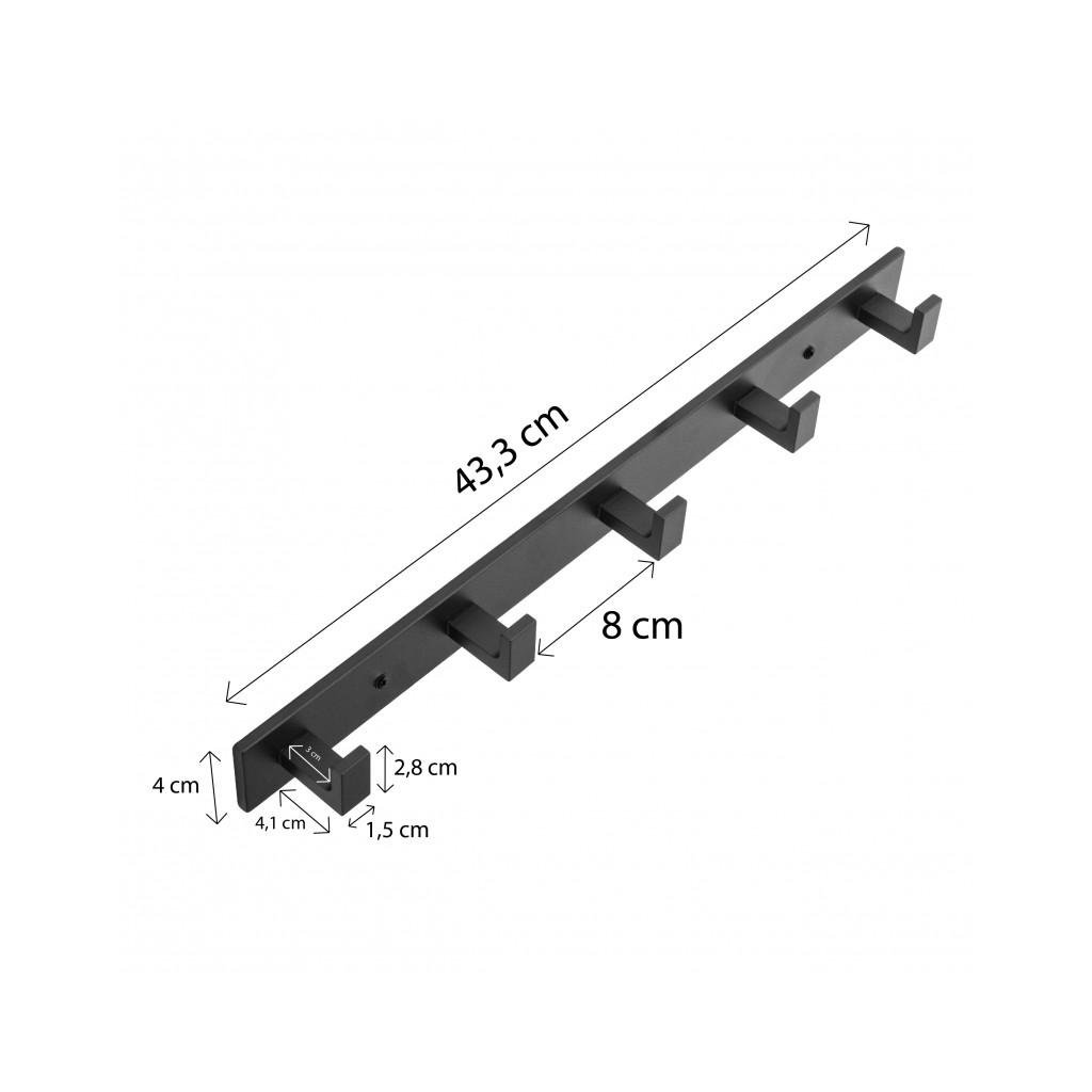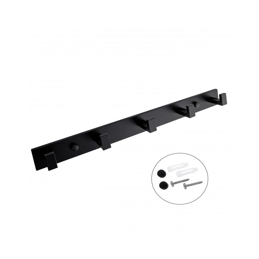 Erga Tenilo, fali akasztó kabátokhoz / 5 kampós törölközőkhöz, fekete matt, ERG-YKA-CH.TENILO