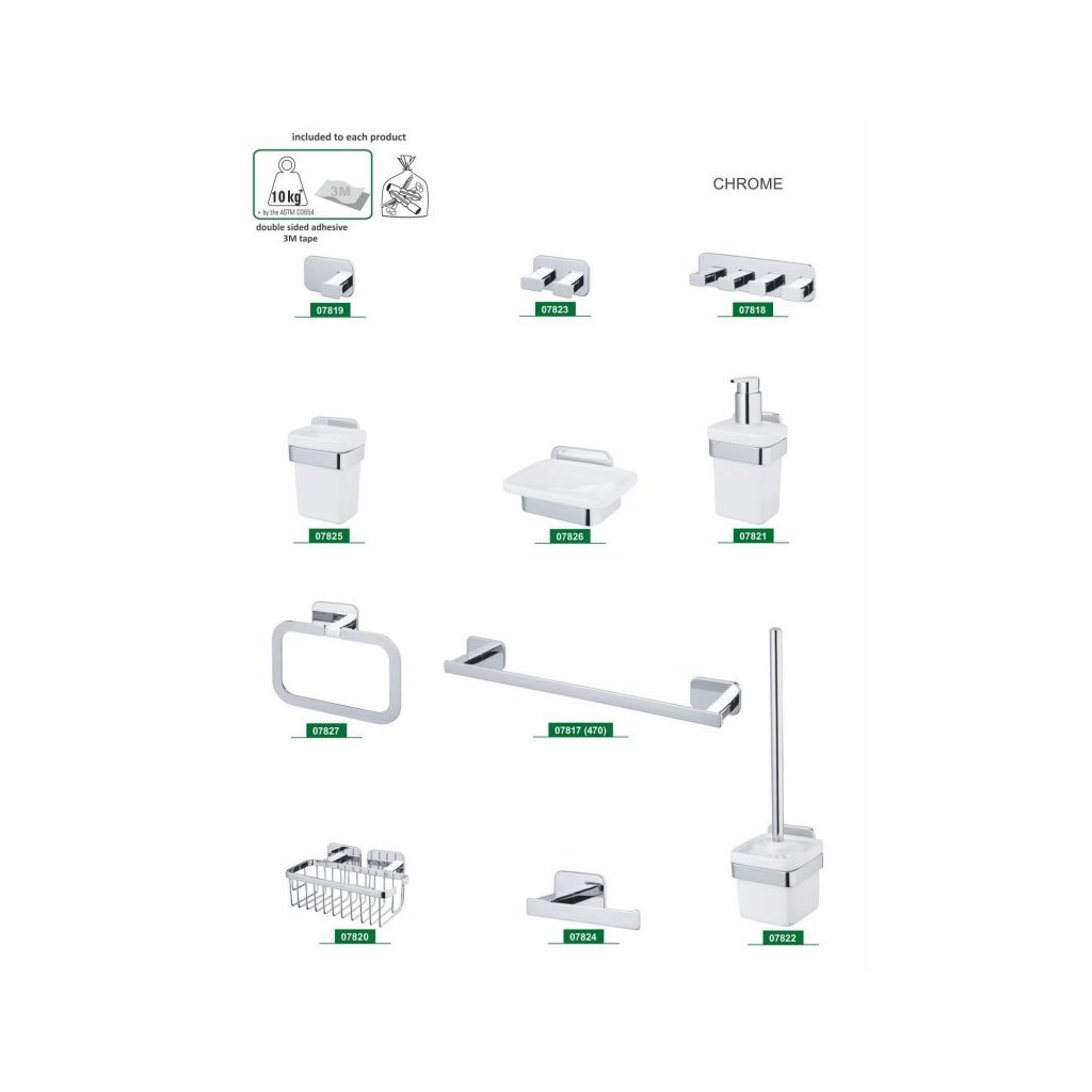 A modern Tore kollekcióhoz tartozó, krómozott fémből készült WC-kefe elegáns és minimalista dizájnnal rendelkezik, amely gazdaságos dizájnnal és gazdag díszítéssel tökéletesen illeszkedik mindkét enteriőrbe. 3 rögzítési rendszer létezik: hagyományos - csavarokkal vagy ragasztóval és innovatív rendszer 3M szalaggal, amely lehetővé teszi a kollekció összes elemének gyors és tiszta rögzítését.
