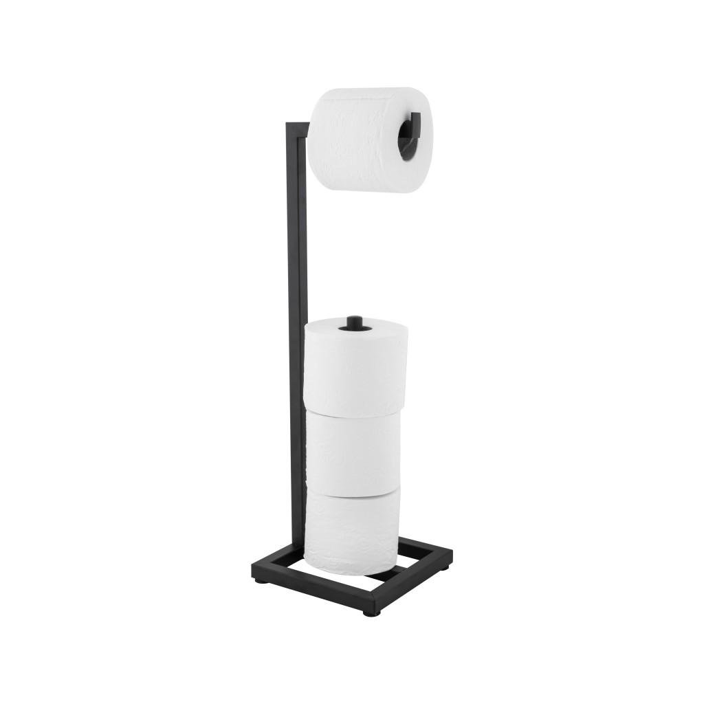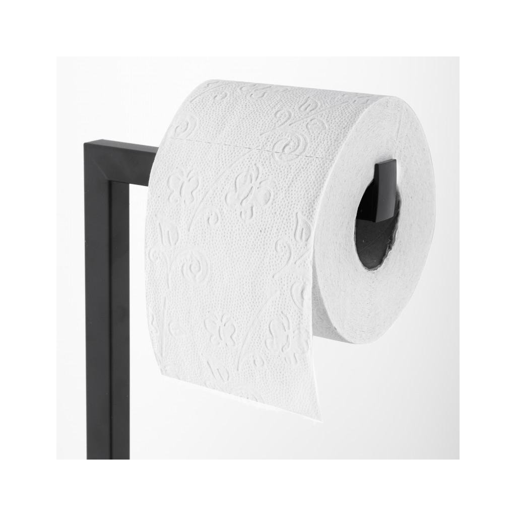 Elegáns állvány tartalék WC-papír számára, extra tekercstartóval. Az állvány kiváló minőségű festett acélból készült. A széles alap és a műanyag párnák kiváló stabilitást biztosítanak.