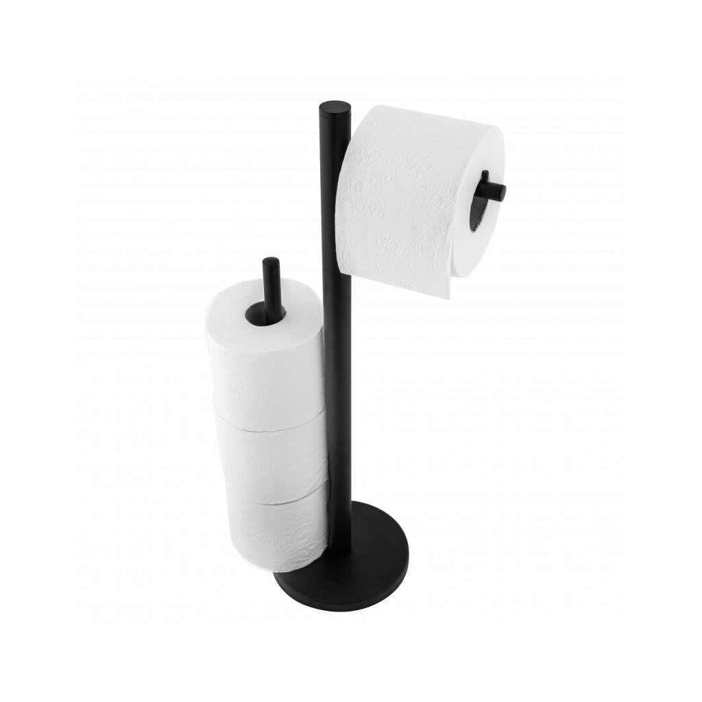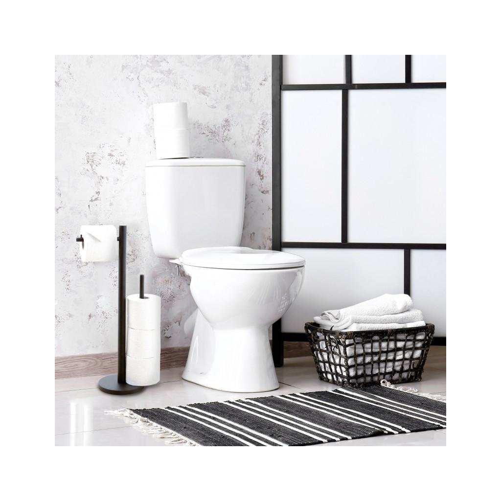 Elegáns állvány a tartalék WC-papír számára WC-papír tartóval. Az állvány kiváló minőségű festett acélból készült. A nagy kerek alap és a műanyag párnák kiváló stabilitást biztosítanak.